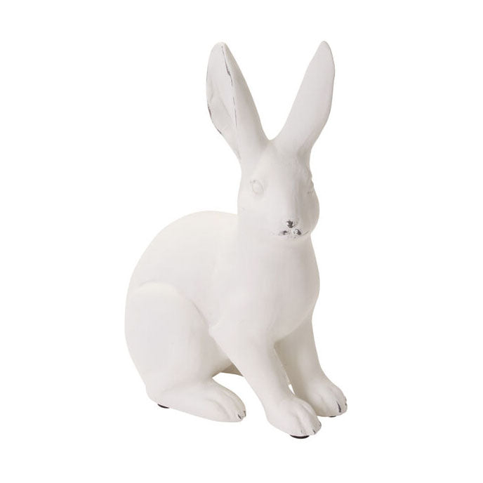 This long-eared magical friend is poised & ready to welcome Easter to the home. The polyresin matte white Rabbit Sculpture offers a timeless look to Easter or spring displays & can be styled indoors, on a front porch, or in an outdoor garden. Close to life size, this sculpture is a great statement piece for spring retail merchandising & can sit on its own or with the other classic rabbits of varying sizes.