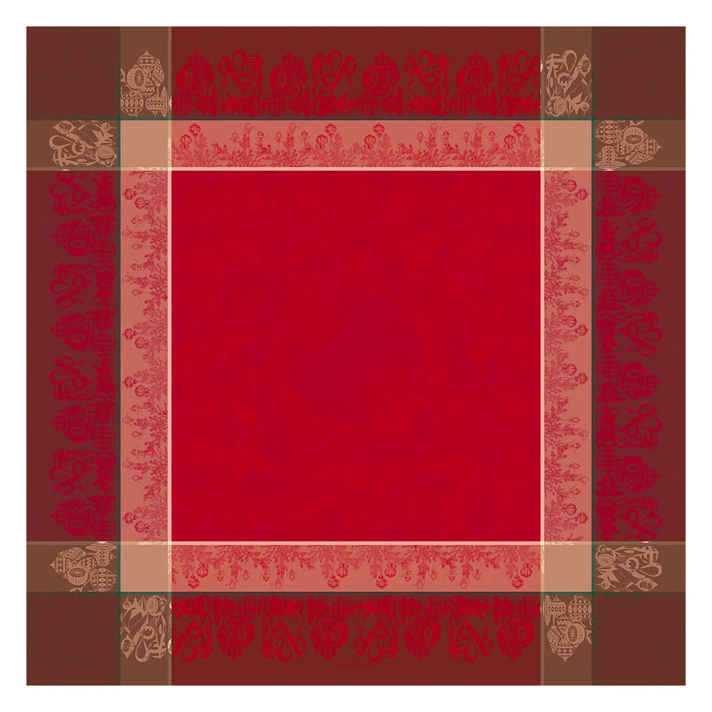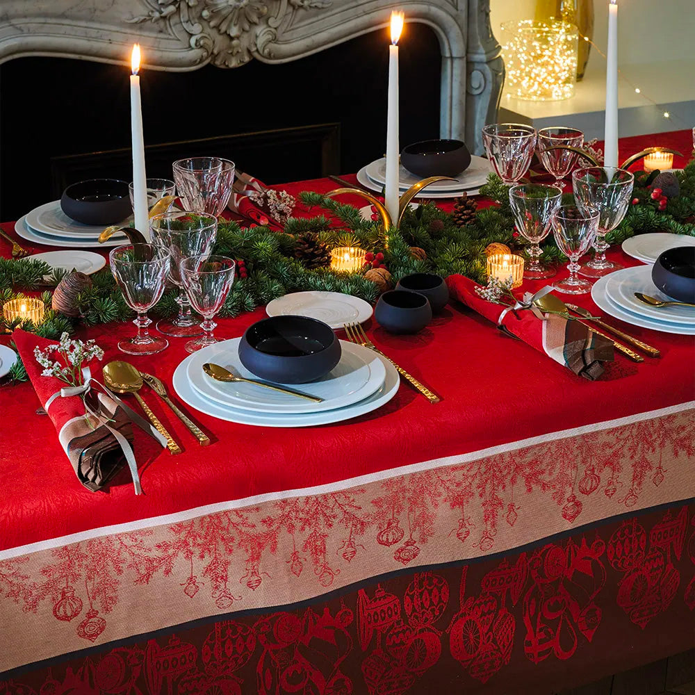 Garnier Thiebaut Couronne De Noel Rouge Jacquard Tablecloth