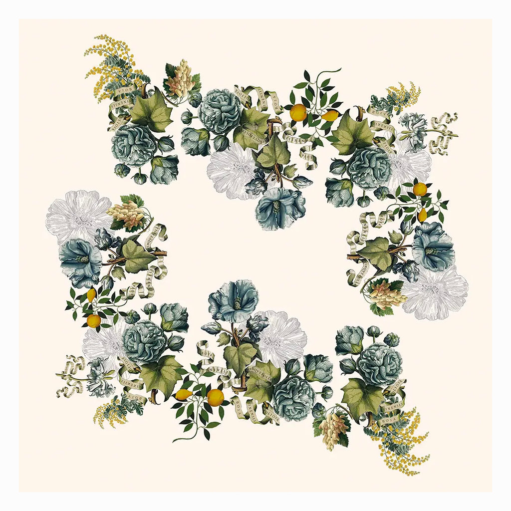 The Giardino Naturel Printed Tablecloth features an Italian garden-scape of rich blue florals, green ivy, and yellow lemon tree branches, stretching across an off-white base of cotton-linen blend fabric. This printed design was crafted from original artwork, hand-drawn by our in-house team of textile artisans & designers in France. Subtle in texture, our pure linen table collections boast a light and airy organic wrinkled appearance, and do not require ironing for easy-maintenance. Perfect for every season's table settings, enjoy rustic Italian garden views in both indoor and outdoor dining settings. by the gardens of Italy which is perfect for any outdoor party this summer.
