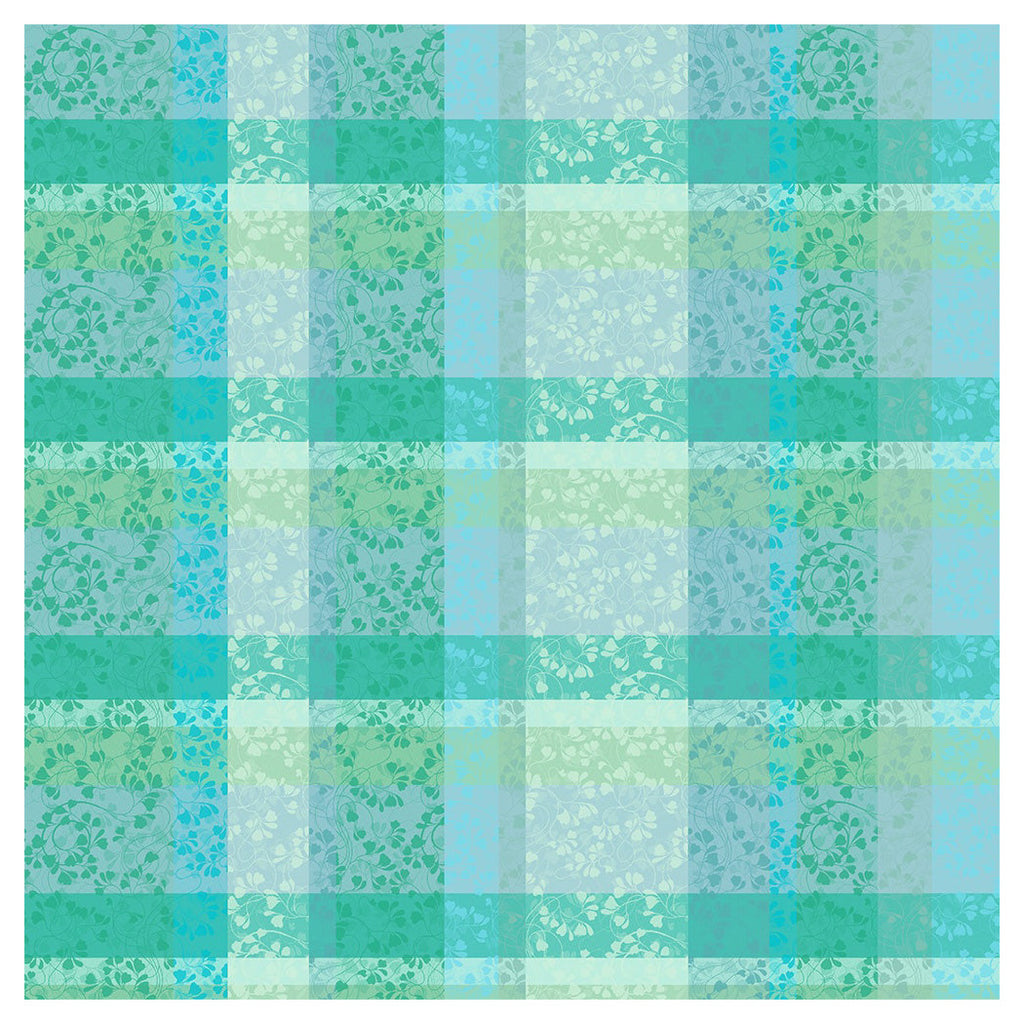 Curate the perfect table with the Mille Feuillages Turquoise Tablecloth by Garnier Thiebaut. This design features intertwining turquoise leaves in shades of green, blue, and cream, woven using jacquard looms with extra-long staple cotton for durability. Hand-drawn by in-house artisans, this tablecloth blends timeless artistry with lasting quality, ideal for any occasion.