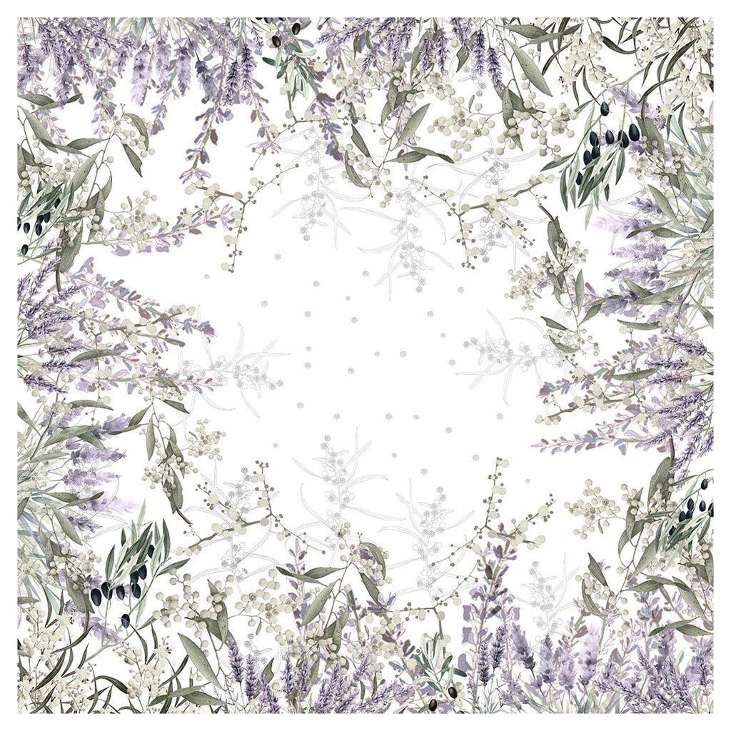 The smell of lavender flows through the air as florals and leaves blow in the breeze, captured in shades of white, green, and purple on the Parfum De Lavande Mauve Tablecloth by Garnier Thiebaut. This printed design was crafted from original artwork, hand-drawn by our in-house team of textile artisans and designers in France. Combining the best qualities of cotton and linen, this fabric blend seamlessly enhances the table with its effortless appearance while providing durability and long-lasting performance.