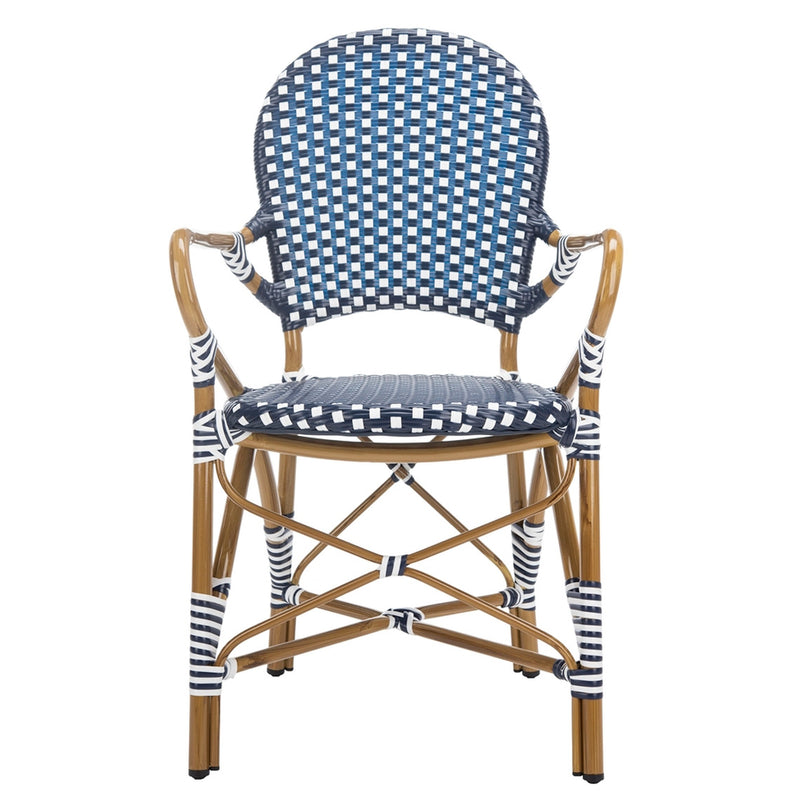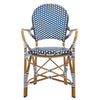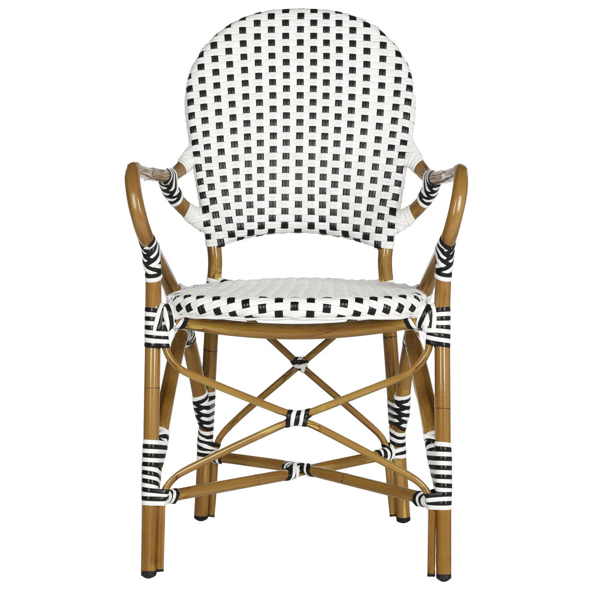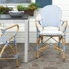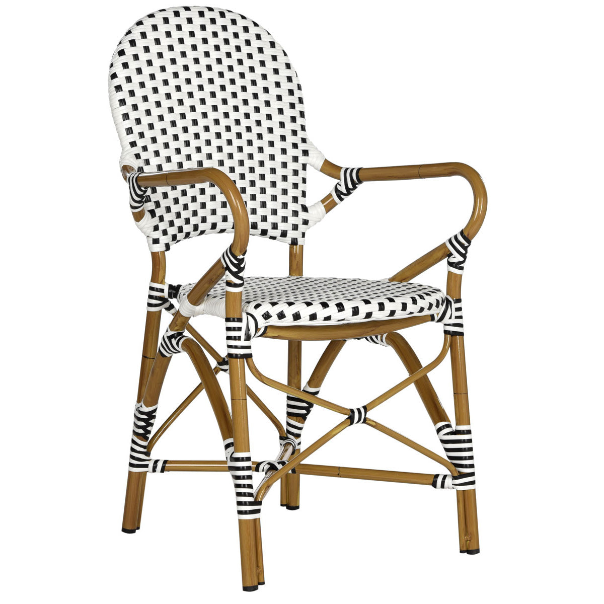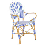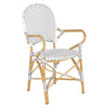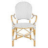 The beloved European bistro chair assumes a coastal cottage vibe in this indoor-outdoor stacking armchair. The cheerful woven PE wicker seat and back extends to pretty wrap detailing on the faux bamboo frame of this classically styled chair.