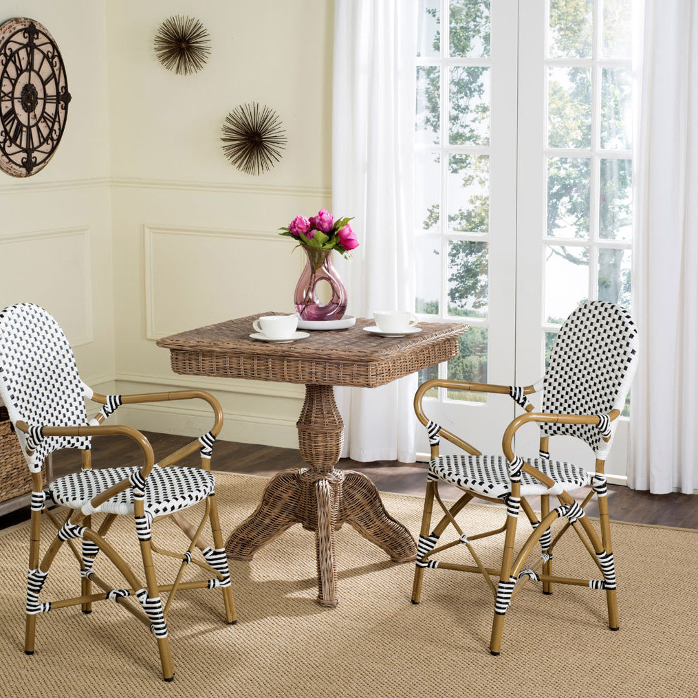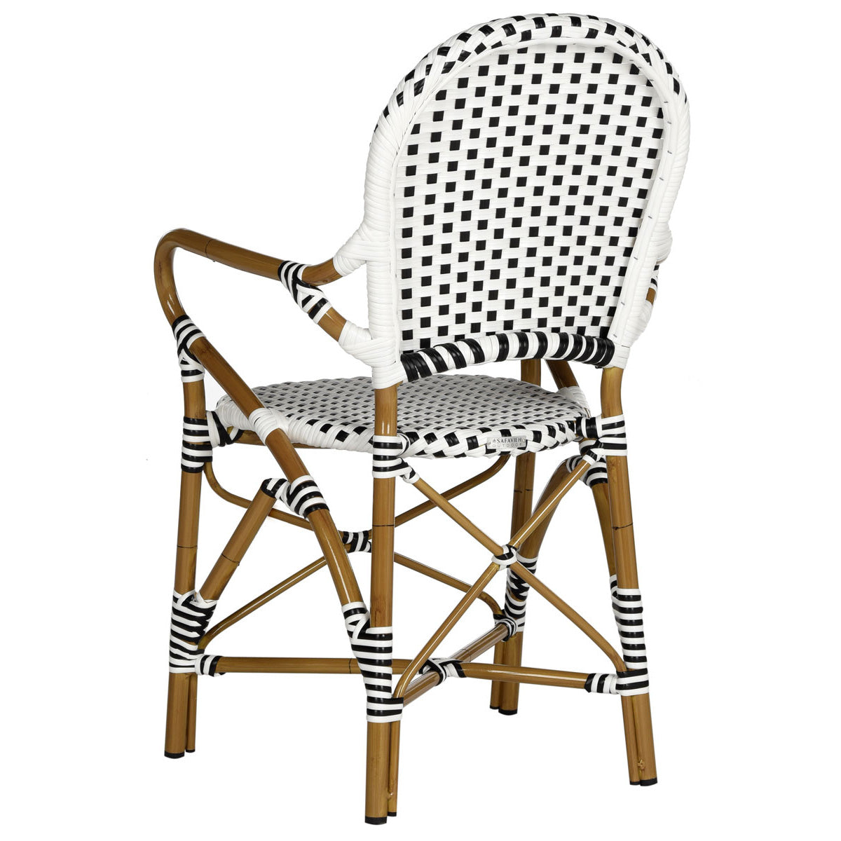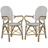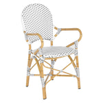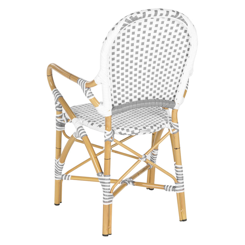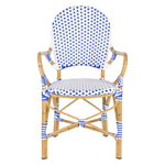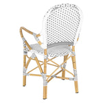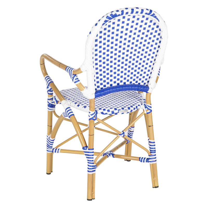 The beloved European bistro chair assumes a coastal cottage vibe in this indoor-outdoor stacking armchair. The cheerful woven PE wicker seat and back extends to pretty wrap detailing on the faux bamboo frame of this classically styled chair.