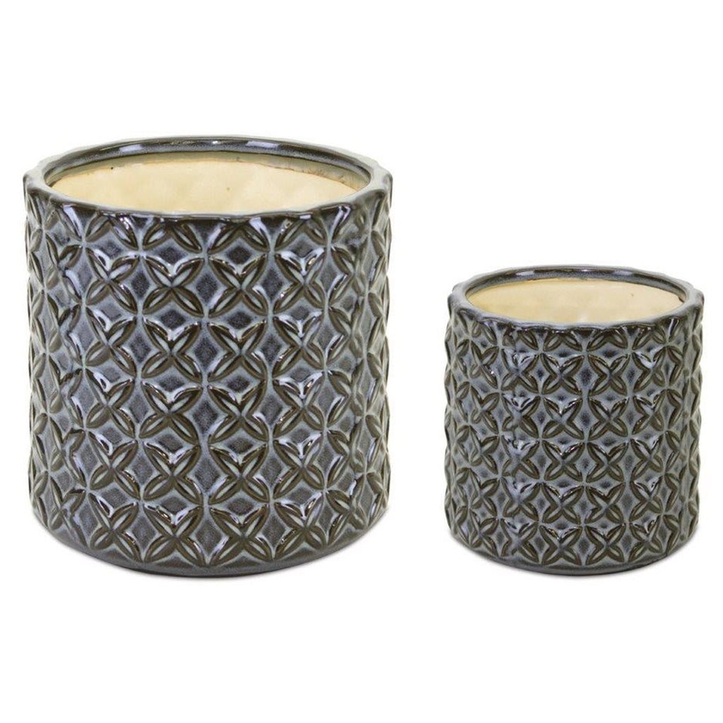 Display your plants in style with this chic set of Glazed Decorative Pots. Featuring two assorted sizes, the fun geometric pattern paired with the deep blue hues is the perfect combination to create a stunning display. The quality terracotta and glaze finish is sure to last for seasons to come. Complete the look by dropping in a faux potted plant or silk tree.