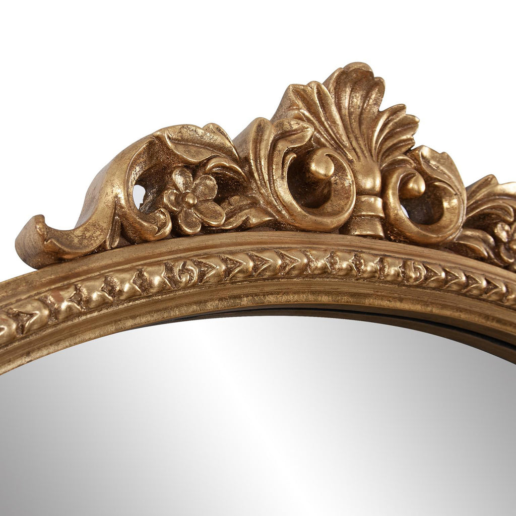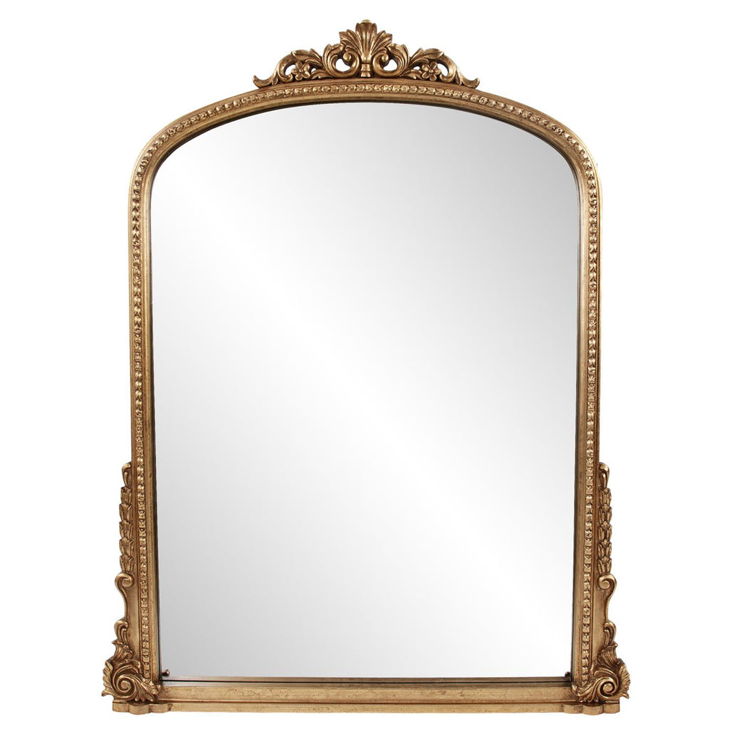 Inspired by antique French mirrors of the late 1800's, the Germaine mantle mirror is crafted and finished by hand. The intricate detailing of the carved wood frame with all the added embellishments is only out done by the opulent and rich antique gold finish. Perched high on the mantel this mirror commands the room with all of it's timeless old world charm.