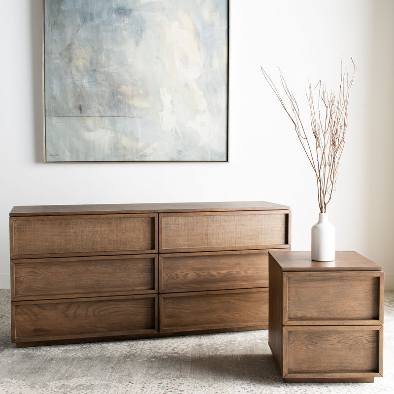 Crafted with the finest materials, this contemporary 6-drawer wood Gibbon Dresser is a design investment. It's timeless, quality wood construction features a luxurious natural finish that highlights its clean lines, as well as the defined frame on each drawer.
