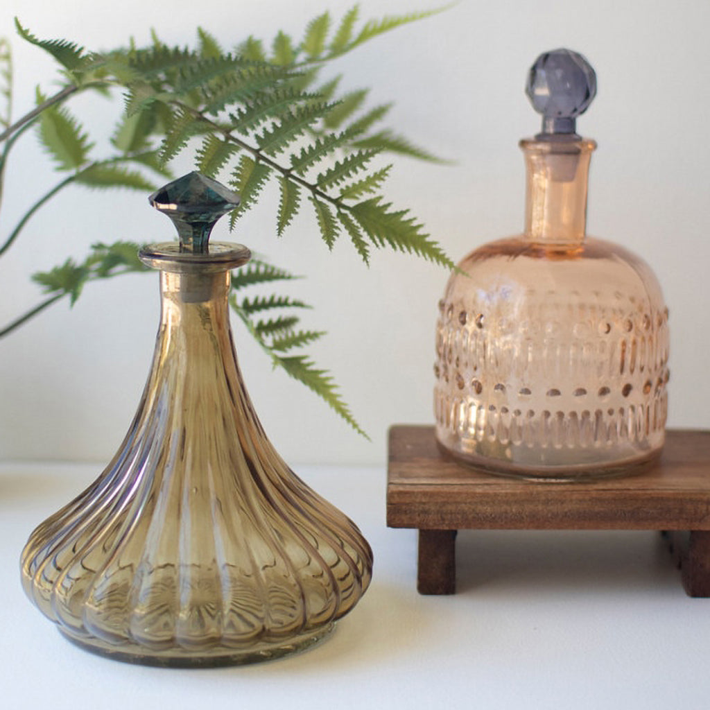 This beautiful set includes two glass decanters in one of each design. Use them for shelf or desk decor in an office that needs a little pizzazz. Gift one or both to brighten someone's day.