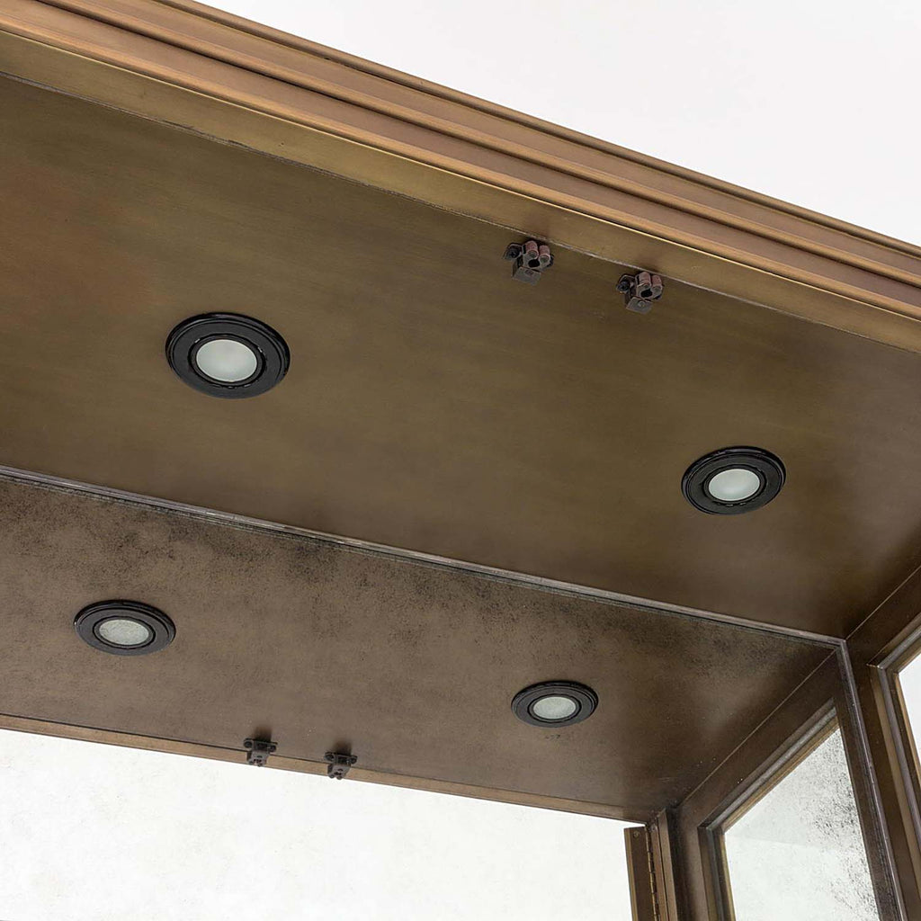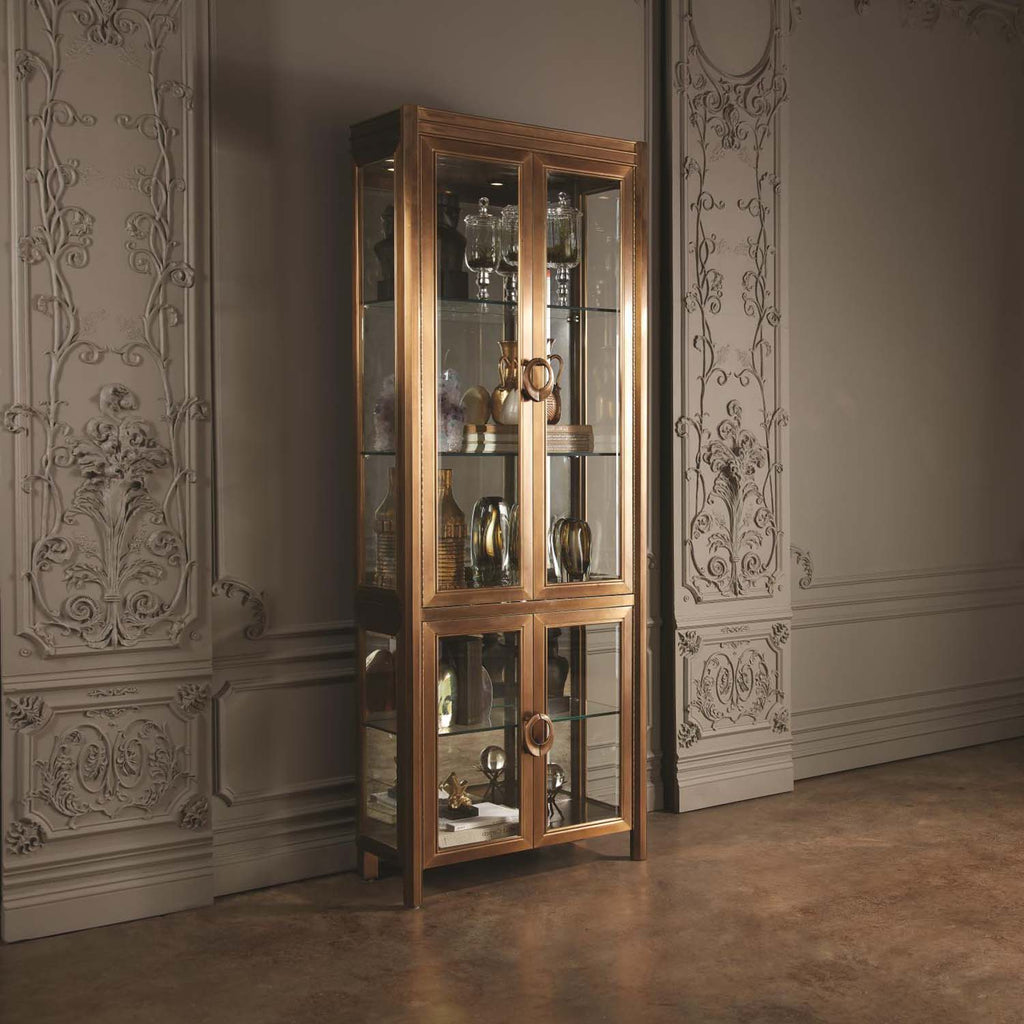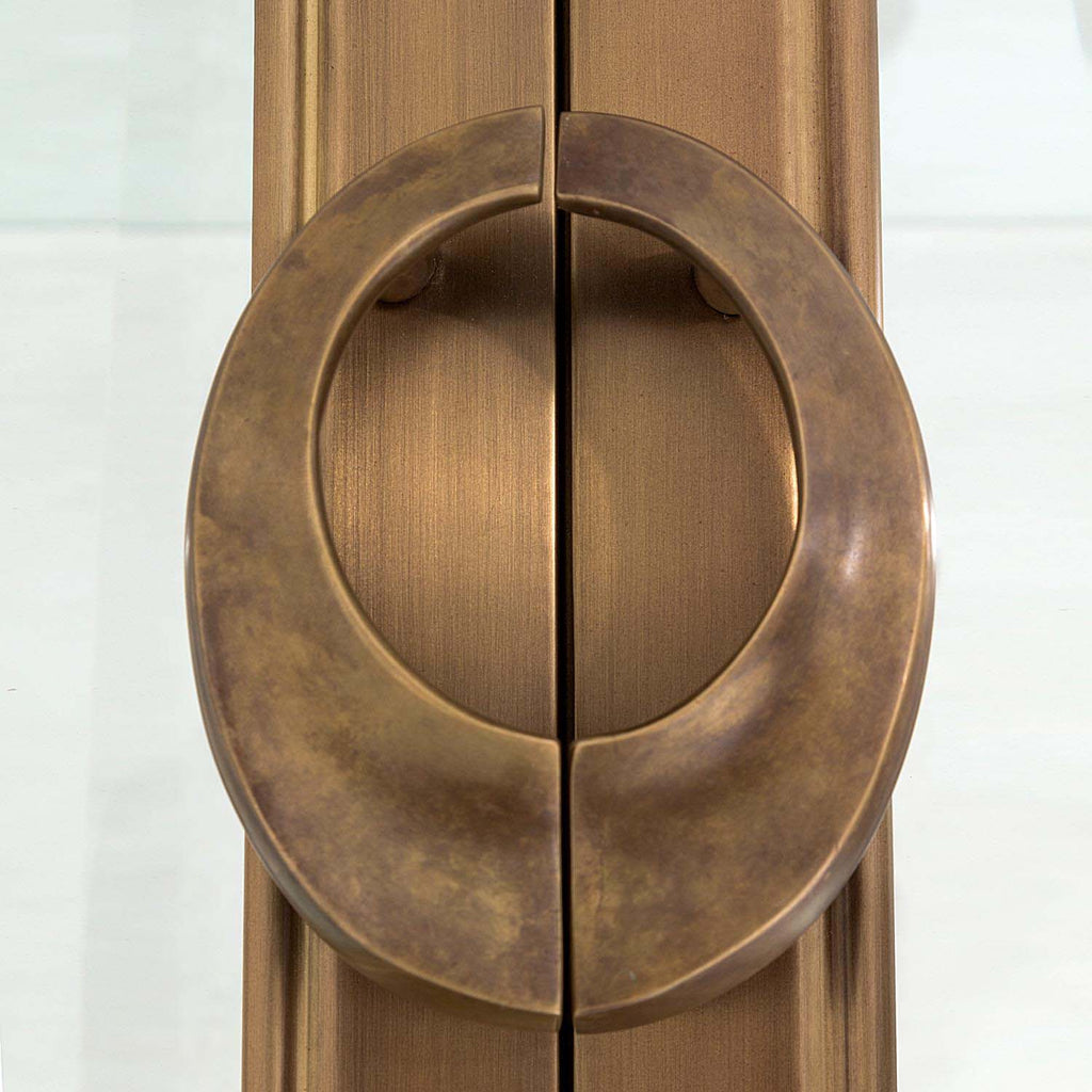 A tall, stately piece of furniture made from an MDF frame and support clad in solid thick brass sheet material. Two compartments, upper and lower, with four shelves- three adjustable, one fixed between the levels. Antique mirror interior back panel. Beveled glass on all doors and side panels. Two sets of sand casted solid brass handles that have been custom made and designed for this piece specifically. Two upper LED lights shine all the way from the very top of the piece through the series of glass shelves to the bottom shelf of the item. Apothecary is one term for a medical professional who formulates and dispenses medical materials to physicians, surgeons, and patients. The modern pharmacist (also colloquially referred to as a chemist in British English) has taken over this role. In some languages and regions, the word "apothecary" is still used to refer to a retail pharmacy or a pharmacist who owns one. Apothecaries' investigation of herbal and chemical ingredients was a precursor to the modern sciences of chemistry and pharmacology. This definition of apothecary should help you well imagine how many wonderful, useful, and other oddities could be displayed within this beautiful elegant vitrine.