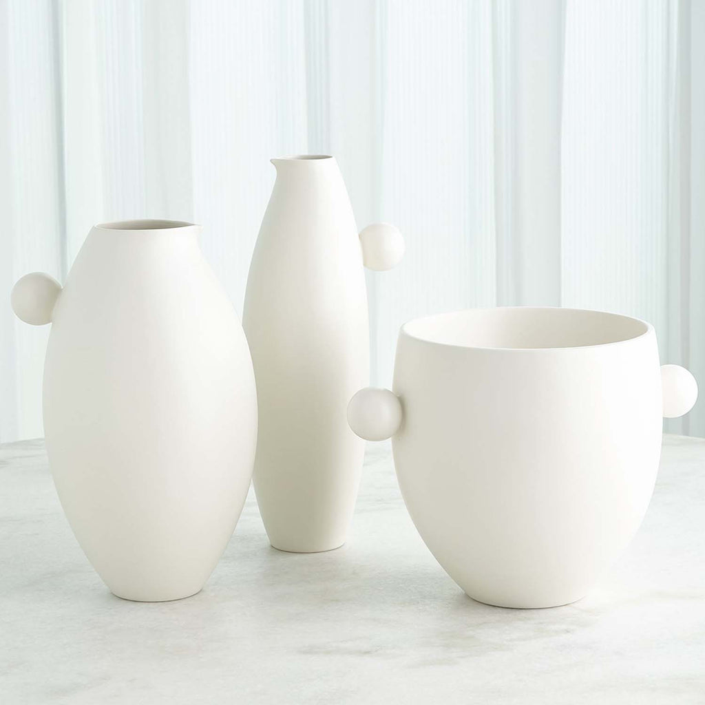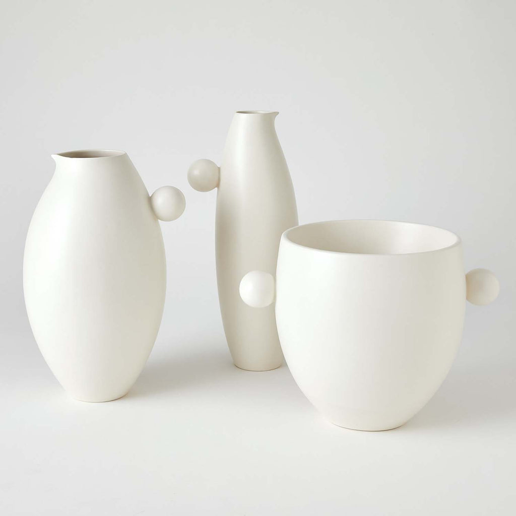 The Global Views Ball Handled Collection is crafted of Portuguese ceramic with a matte glaze. The ice bucket has double-wall construction to prevent external condensation. Cold beverages only. Food safe.