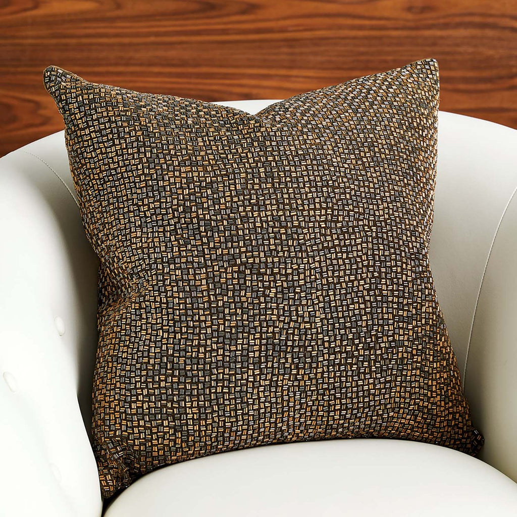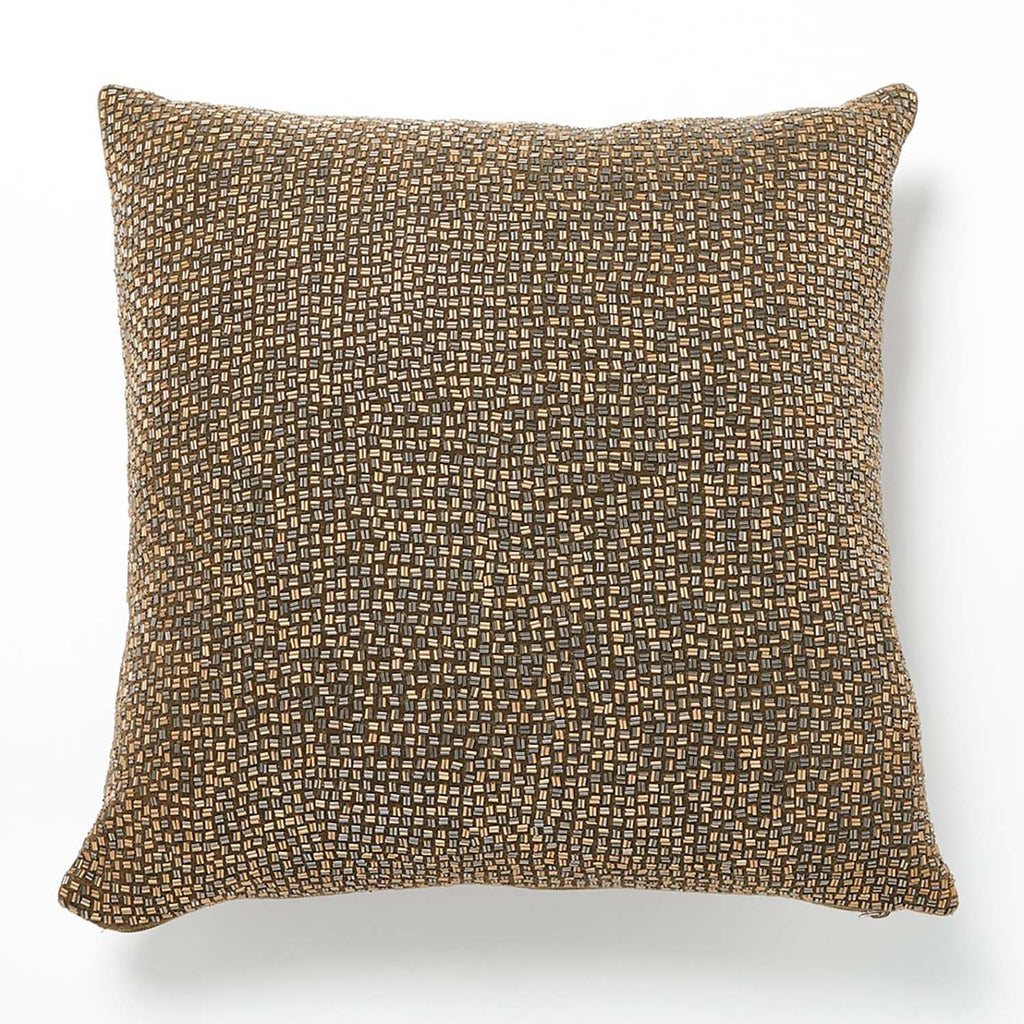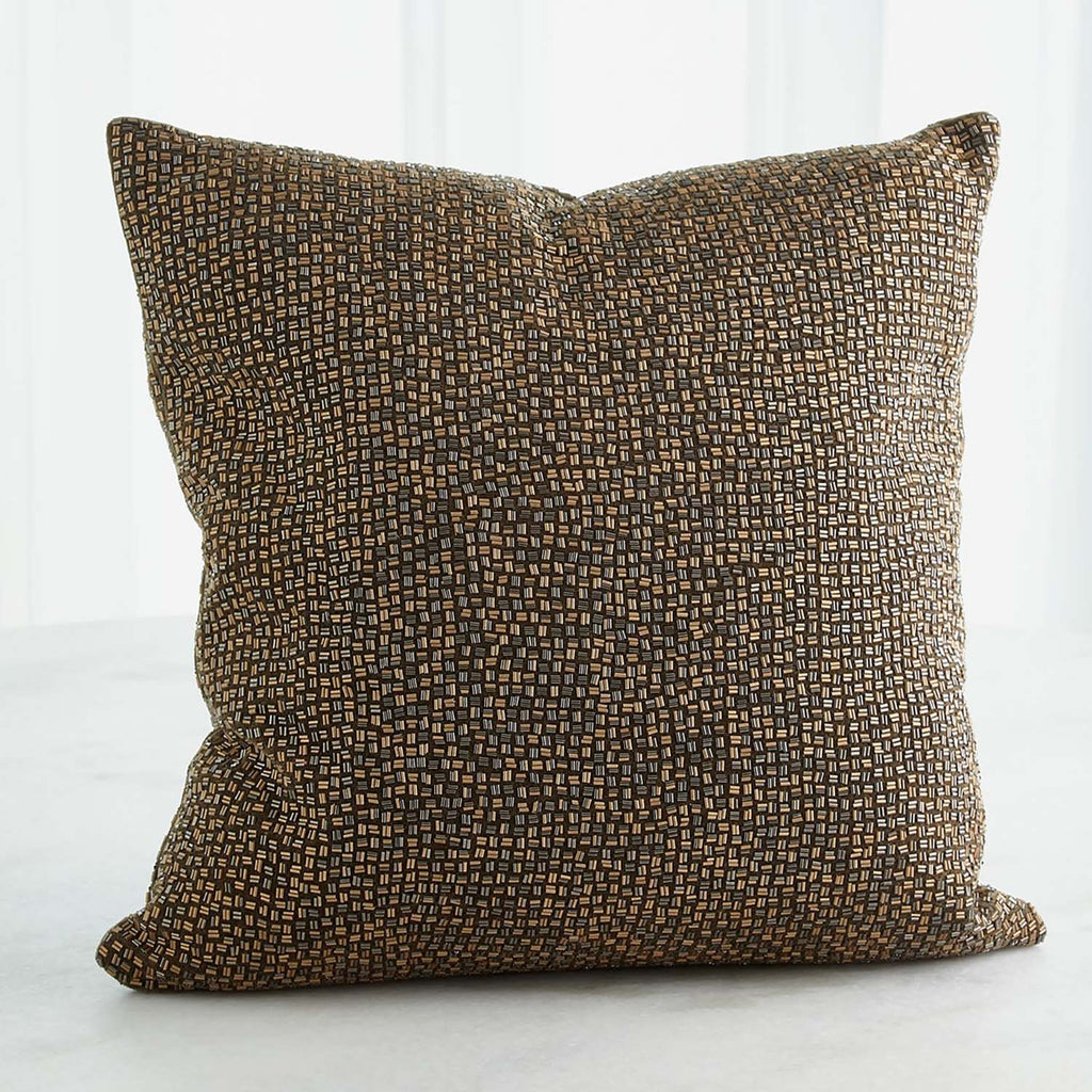 The Global Views Bugle Beaded Pillow is fully beaded with an alternating gold and gunmetal pattern. Down fill insert included.