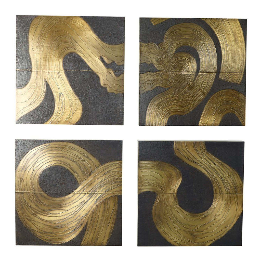 Inspired by natural water movements, The Global Views Currents Wall Panels are brass clad on wooden sub-structure. Panels can be arranged in multiple configurations.