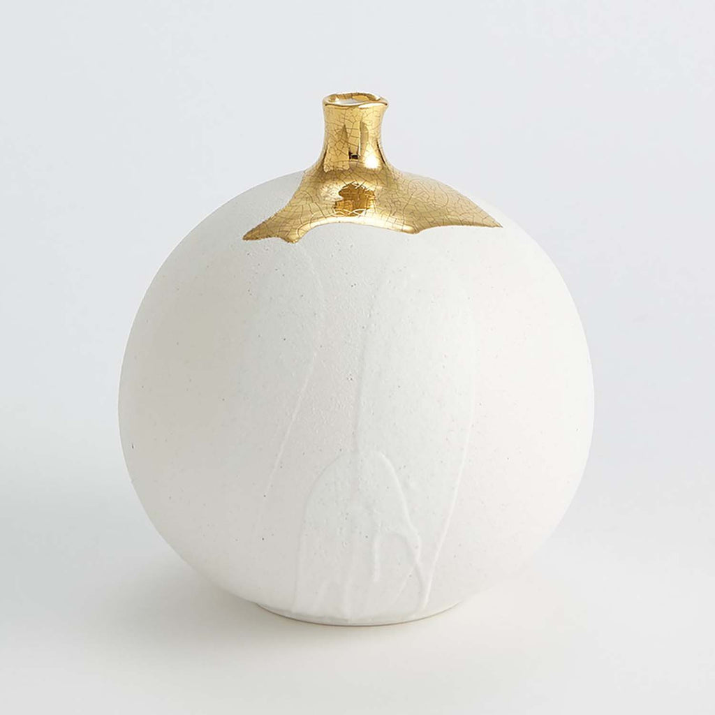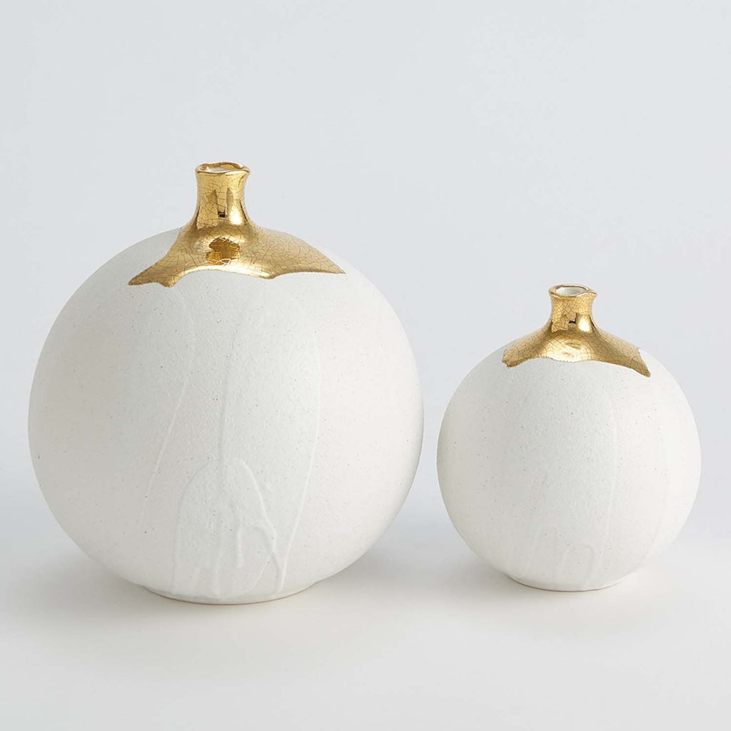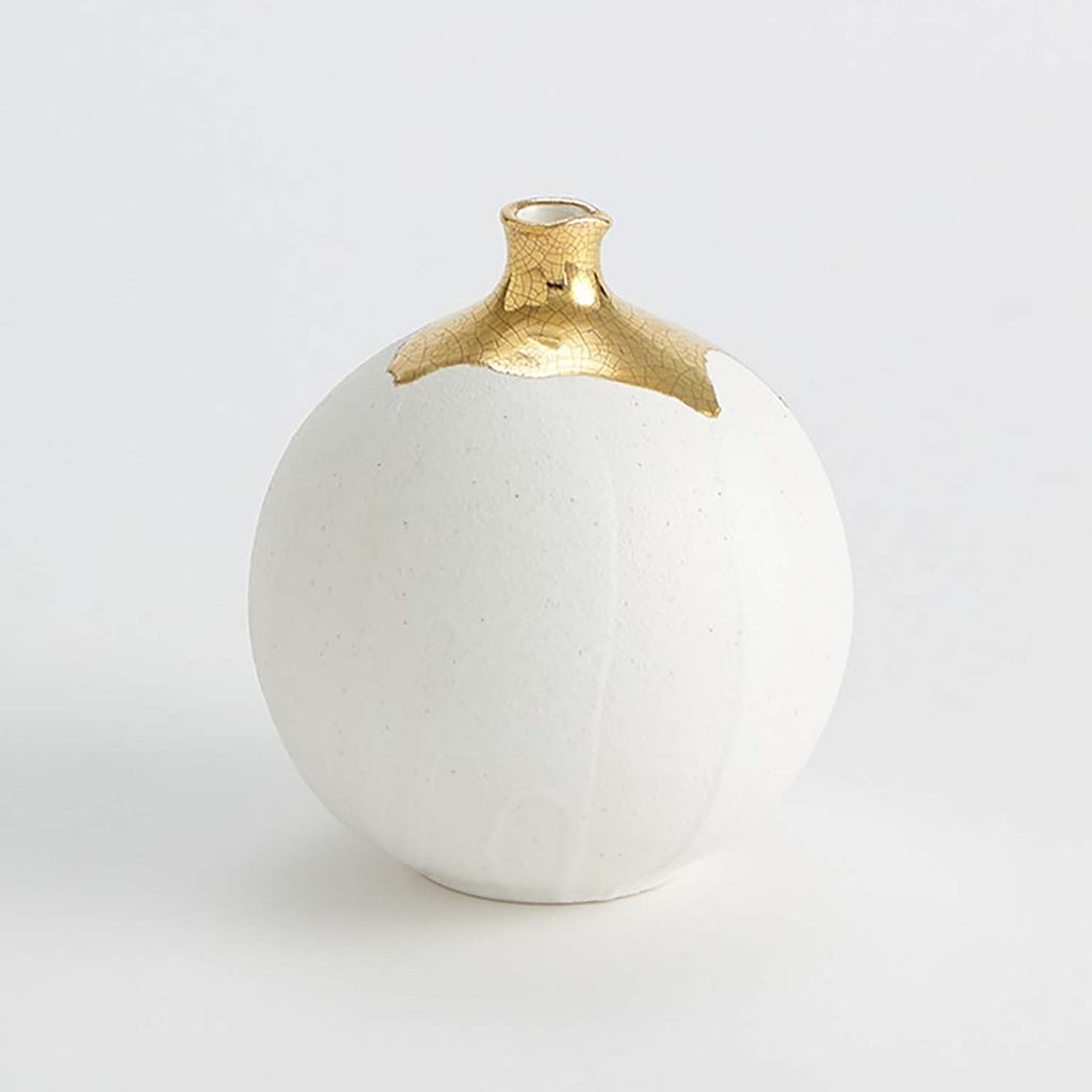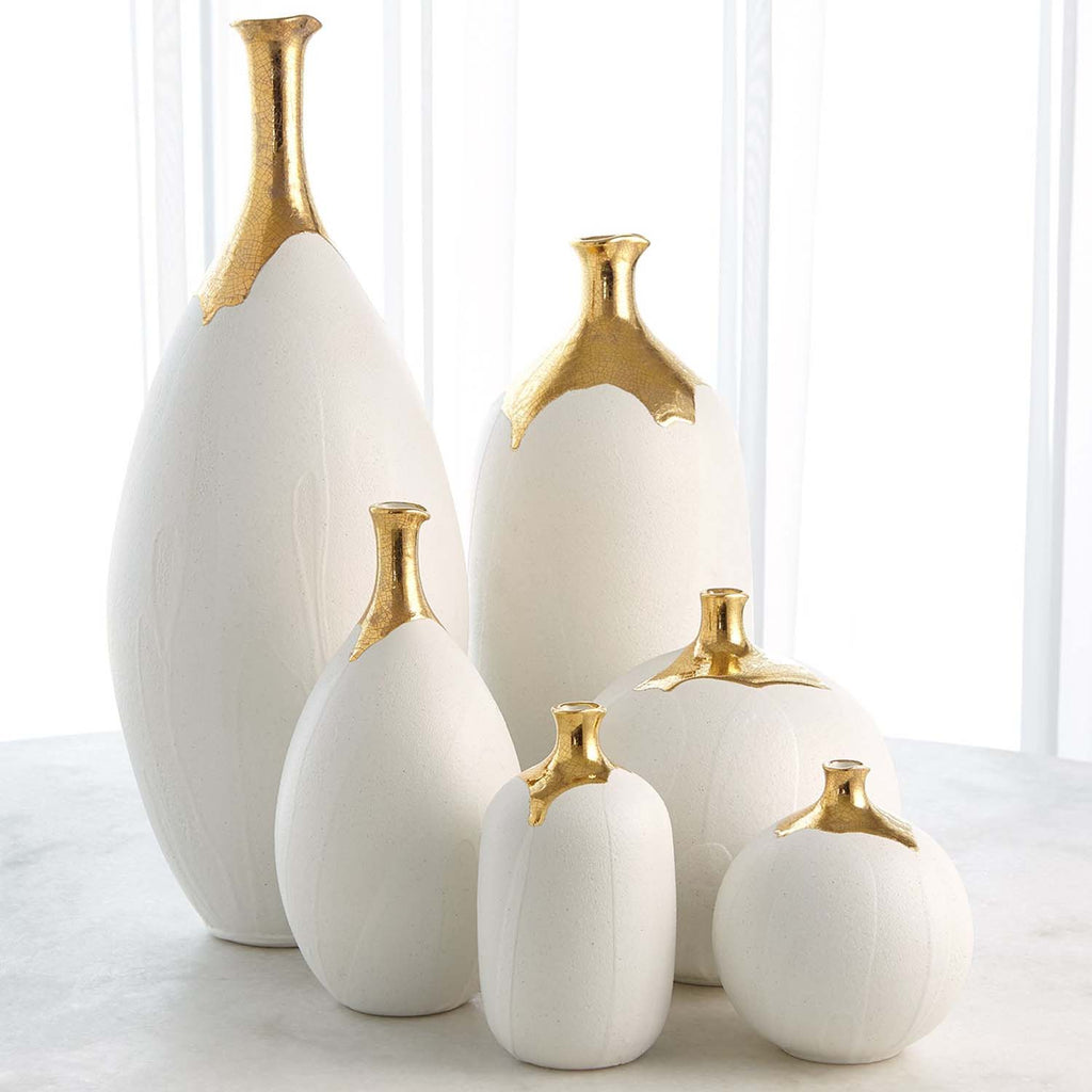 The Global Views Dipped Golden Crackle Vase Collection is made of Italian slip cast ceramic and each vase is hand dipped in 24-karat gold with crackled detail.