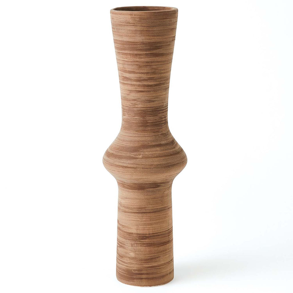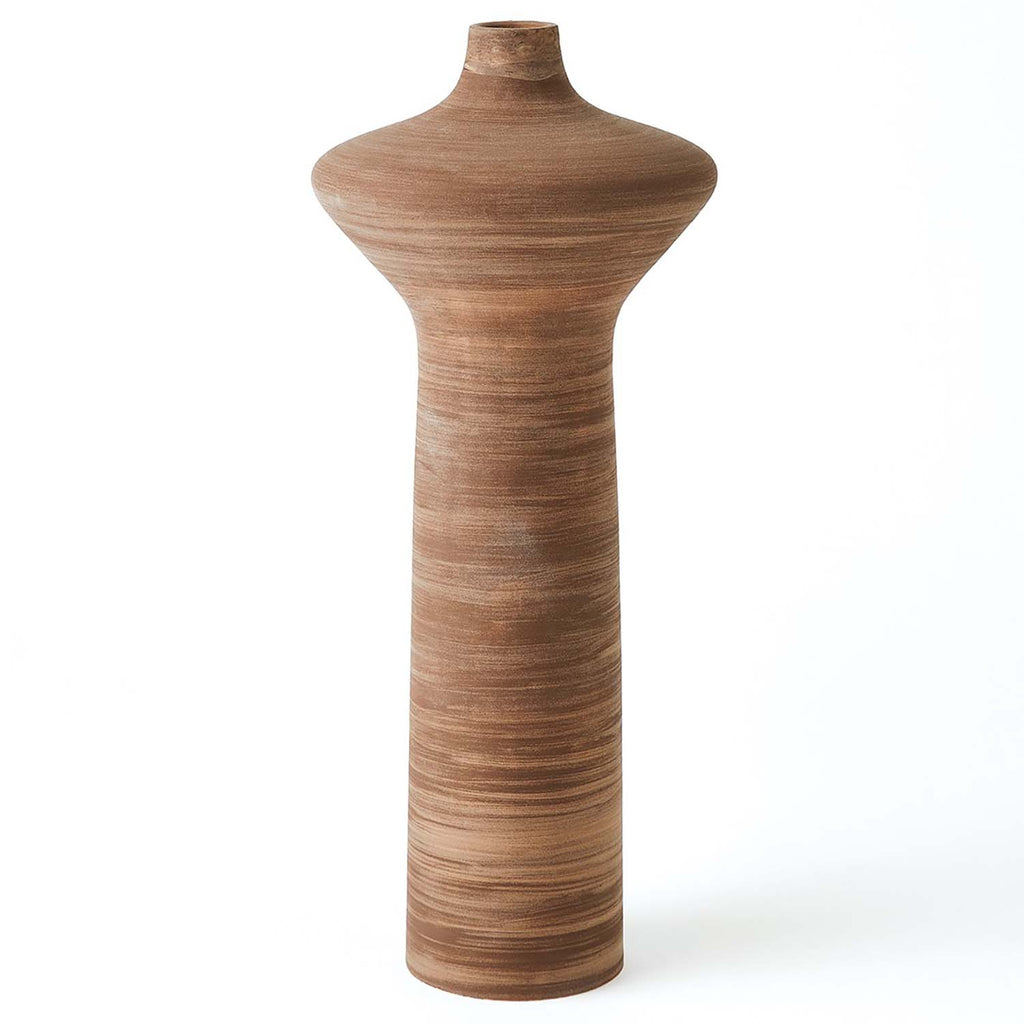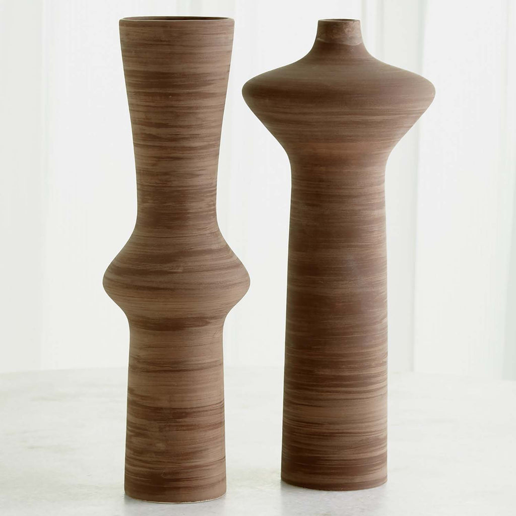 The Gloval Views Expo Vases feature primitive silhouettes crafted of Portuguese ceramic with striated details.