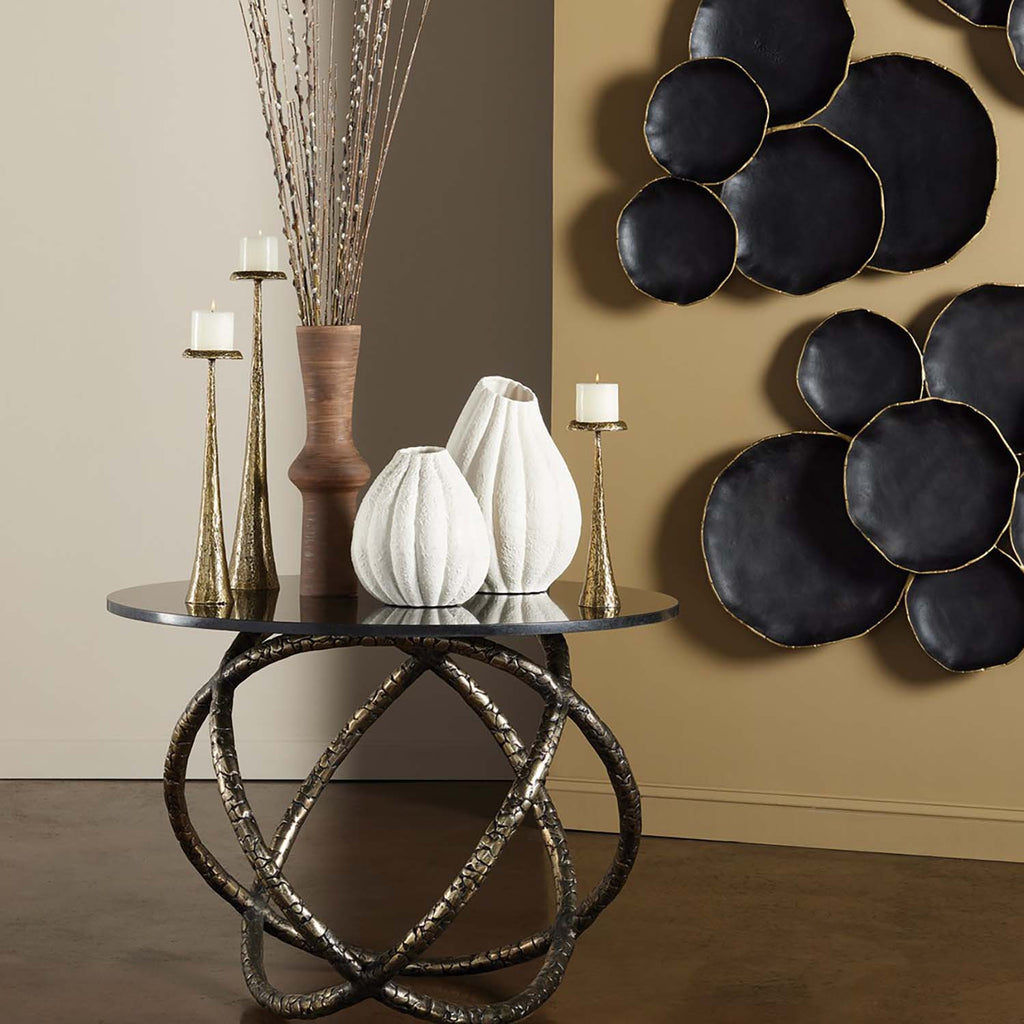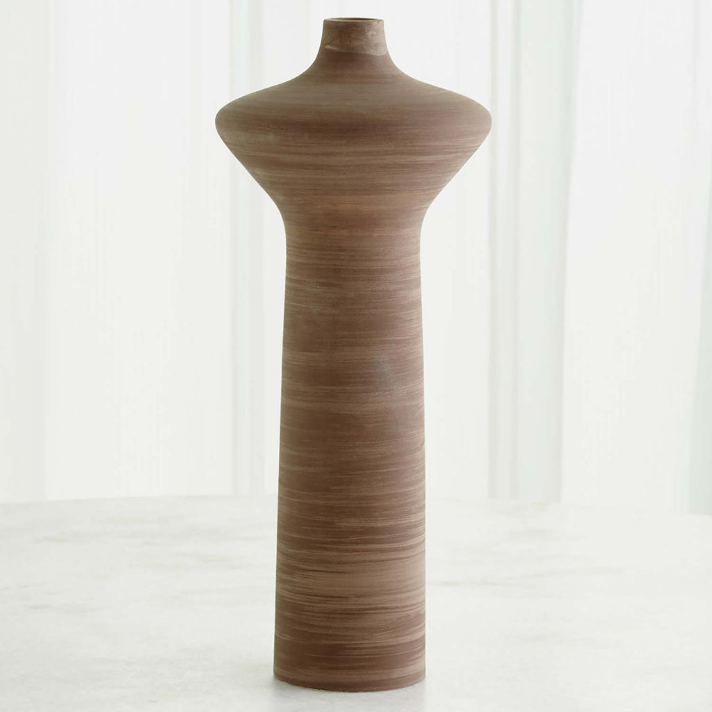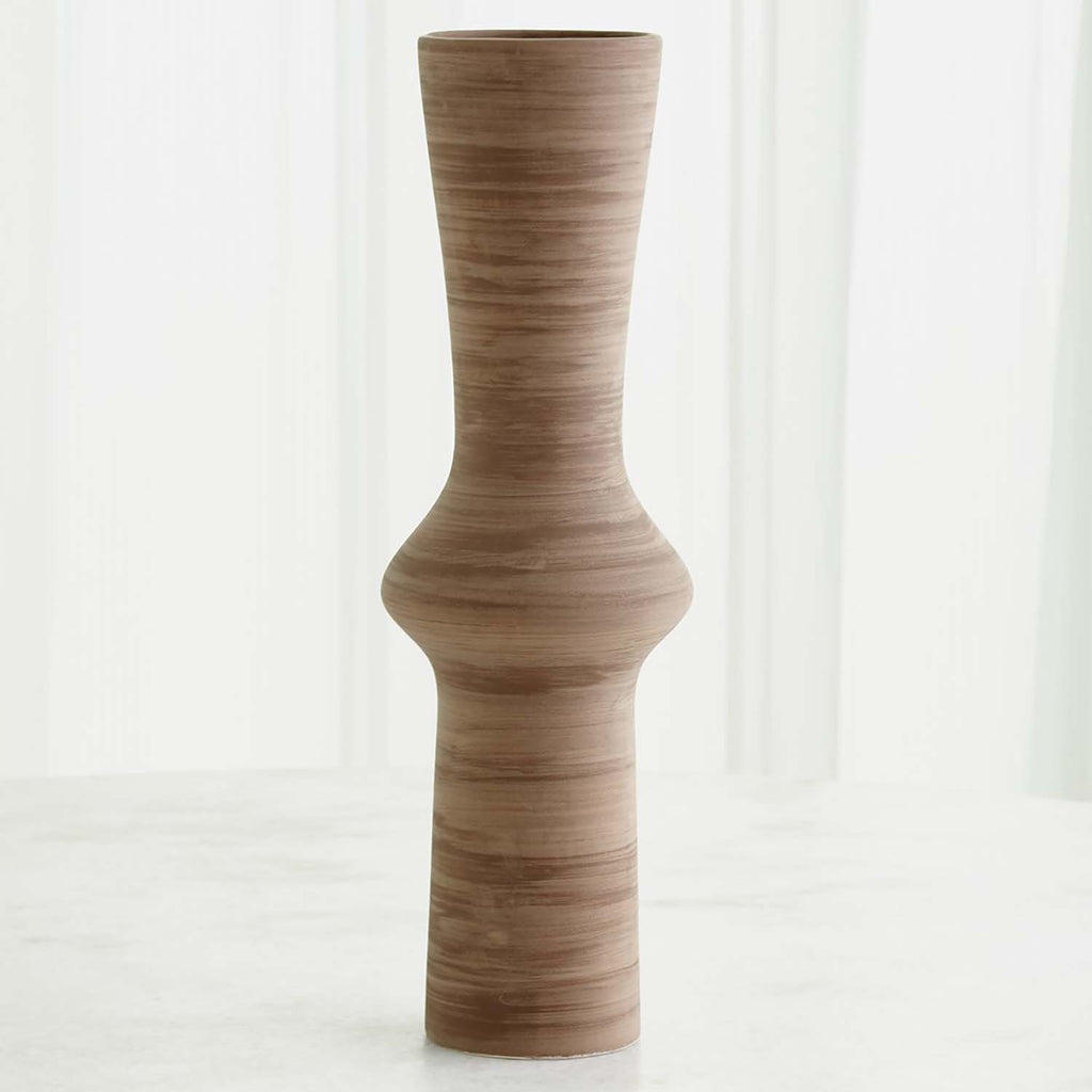 The Gloval Views Expo Vases feature primitive silhouettes crafted of Portuguese ceramic with striated details.