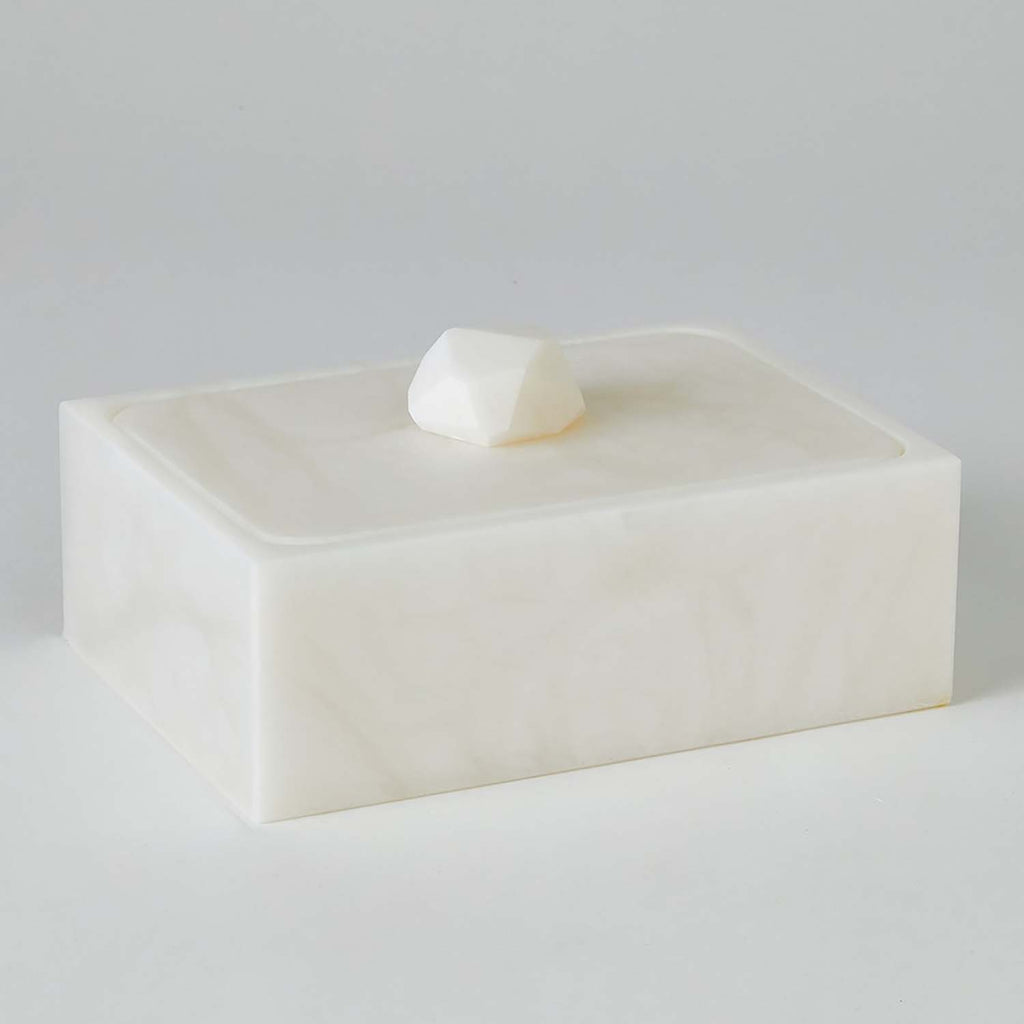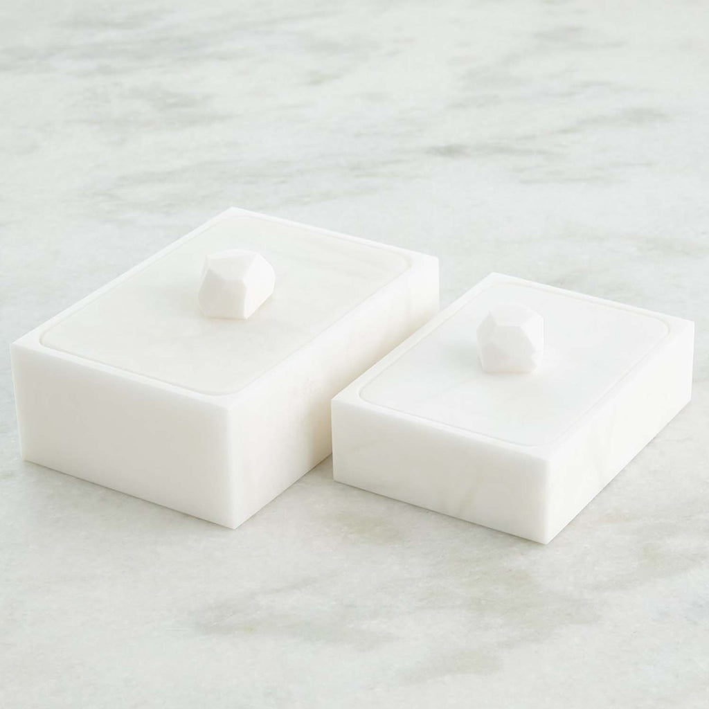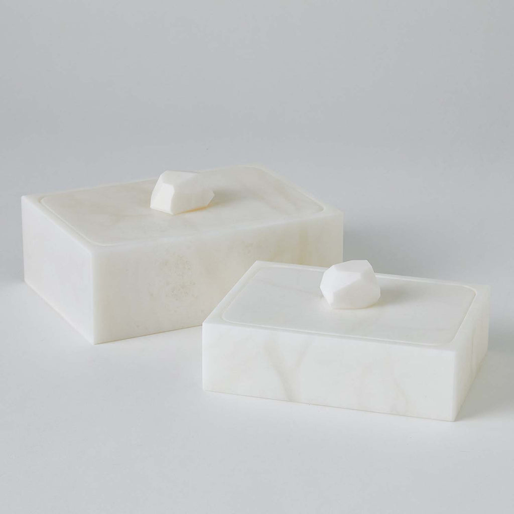 Handcrafted by Italian artisans, the Global Views Facet Knob Boxes are unique with the natural veining of the stone and available in two sizes.