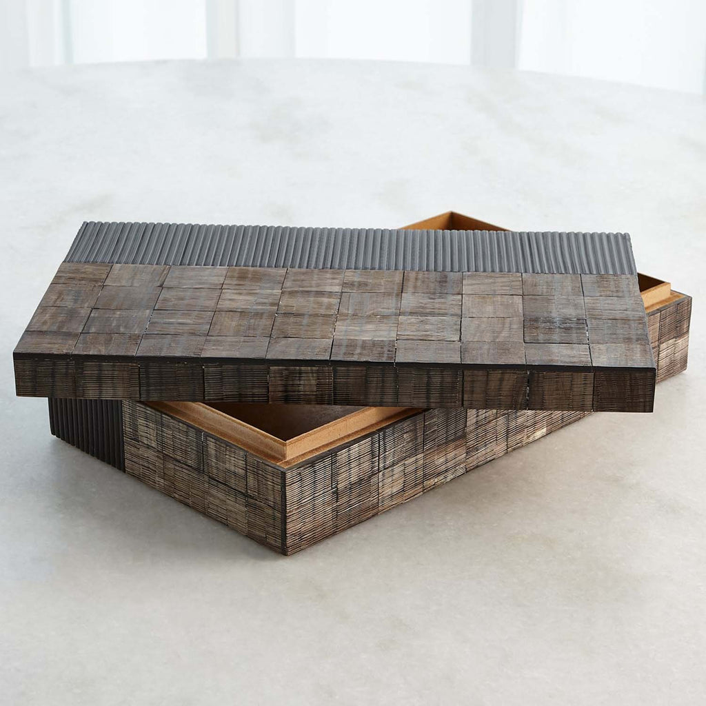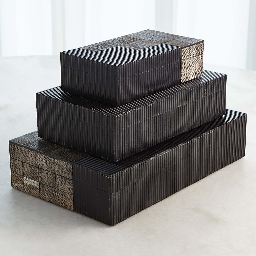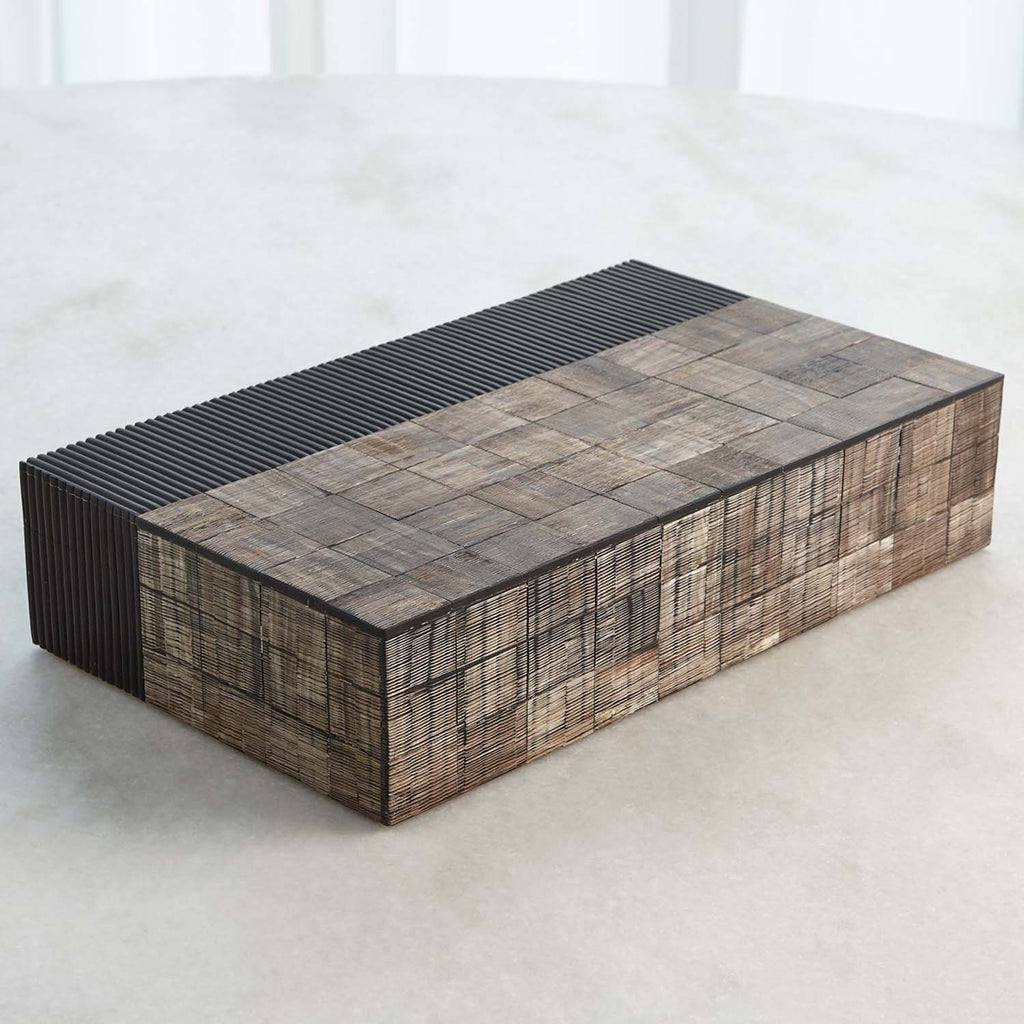 The Global Views Gilles Collection is handmade of ribbed horn and resin with a burnt stained finish.