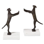The Global Views Golden Retriever Bookends bring their playful nature into your home and heart. The brass pups hold your favorite reads neatly and sit on a white marble base.