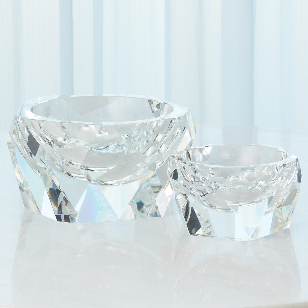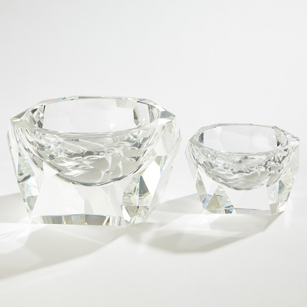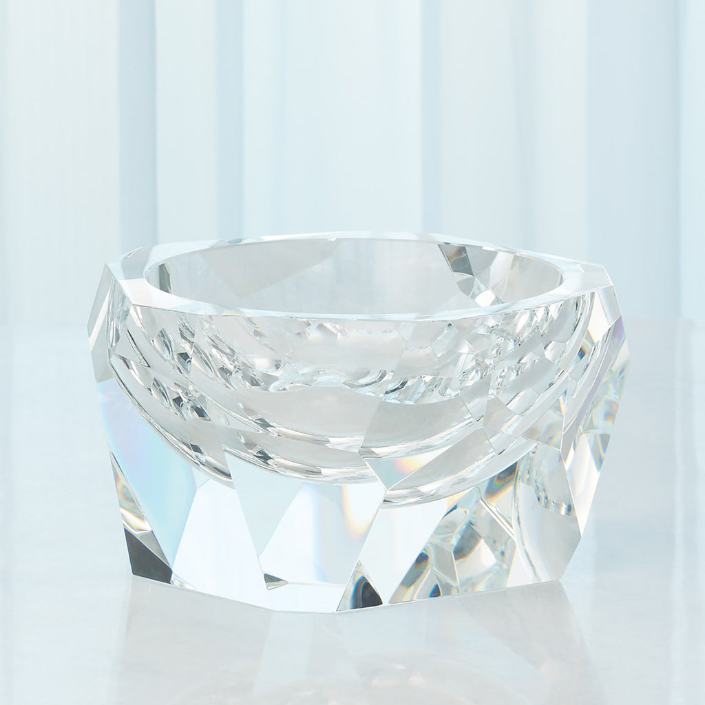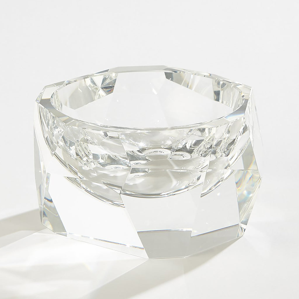 Our Global Views Multi Facet Crystal Bowls are formed from large blocks of crystal and ground smooth to make the polished edges and creative shape.