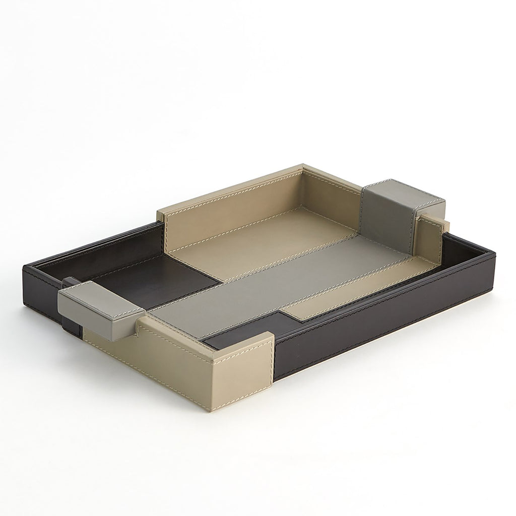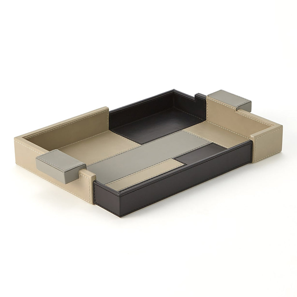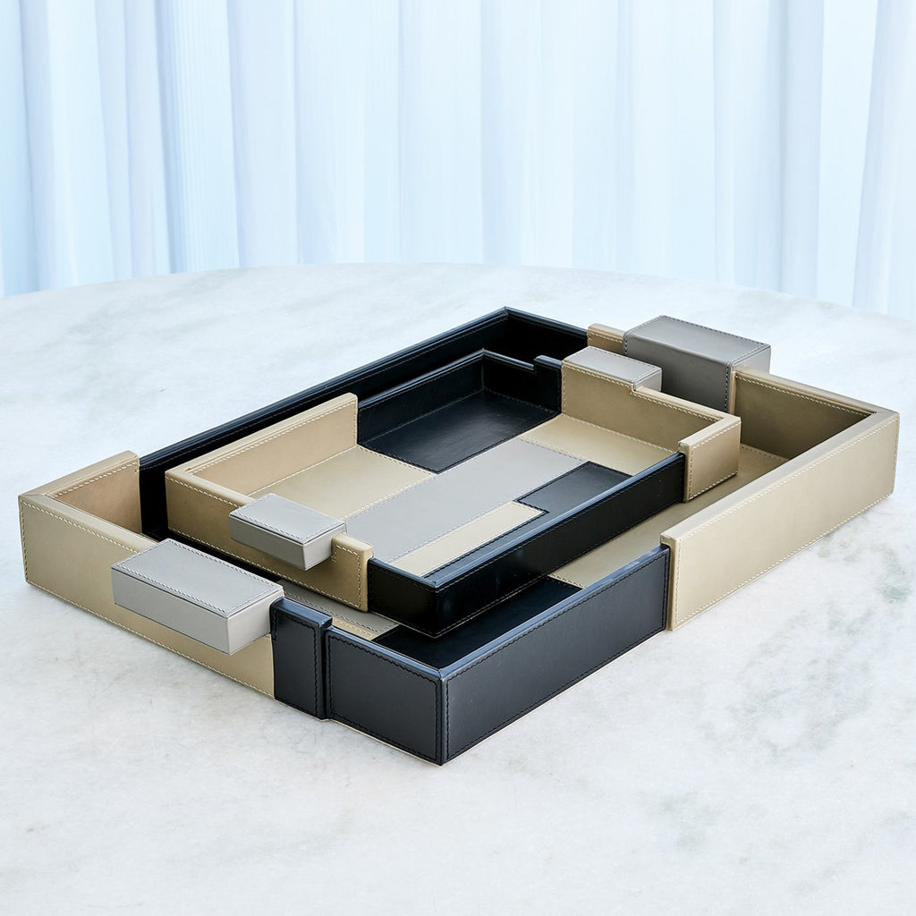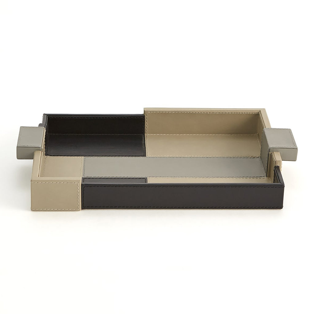 The Global Views Tri-Color Collection offers a sleek, modern design made of top grain leather.