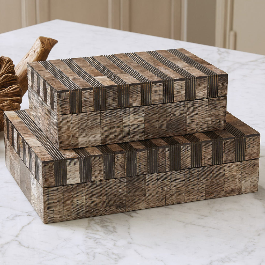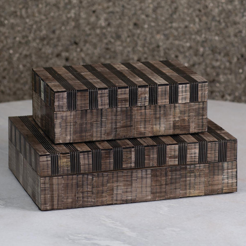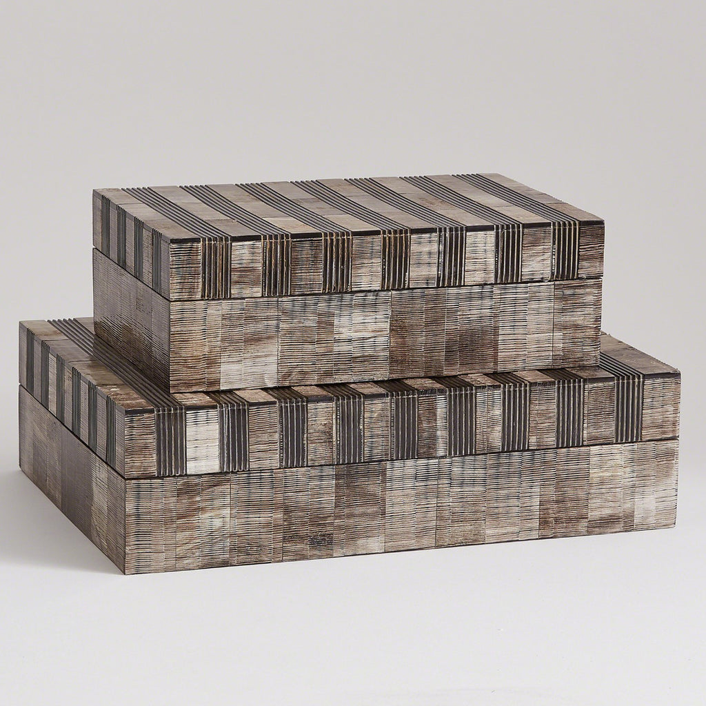 The contrasting stripes of the Global Views Sienna trays are reminiscent of the distinctive striped architecture of the medieval Tuscan city of Sienna. Our Sienna boxes are made of buffalo horn and show exacting craftsmanship.