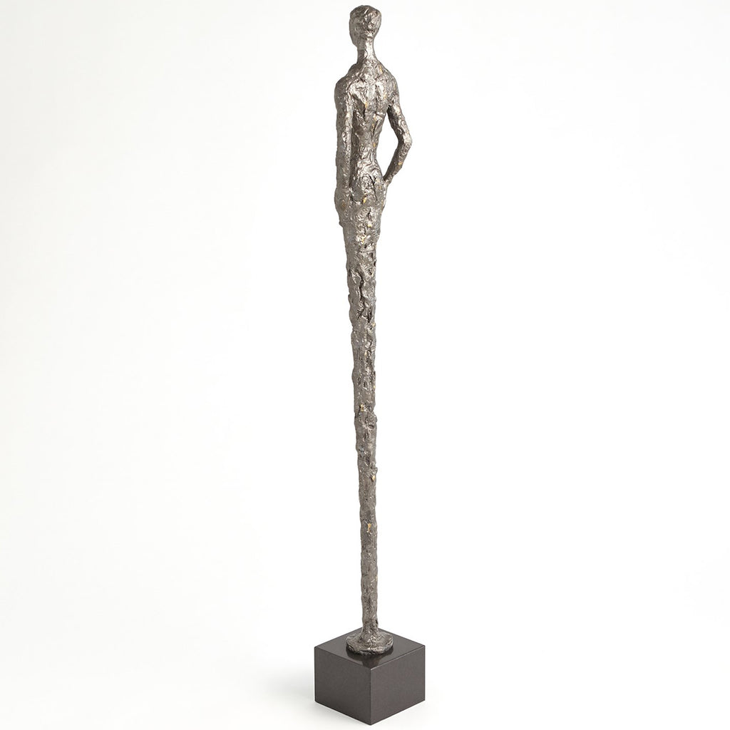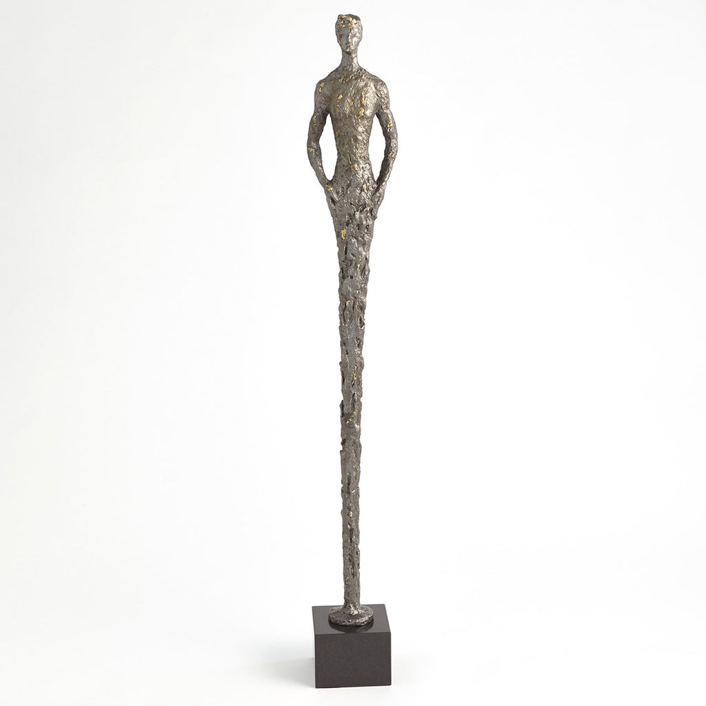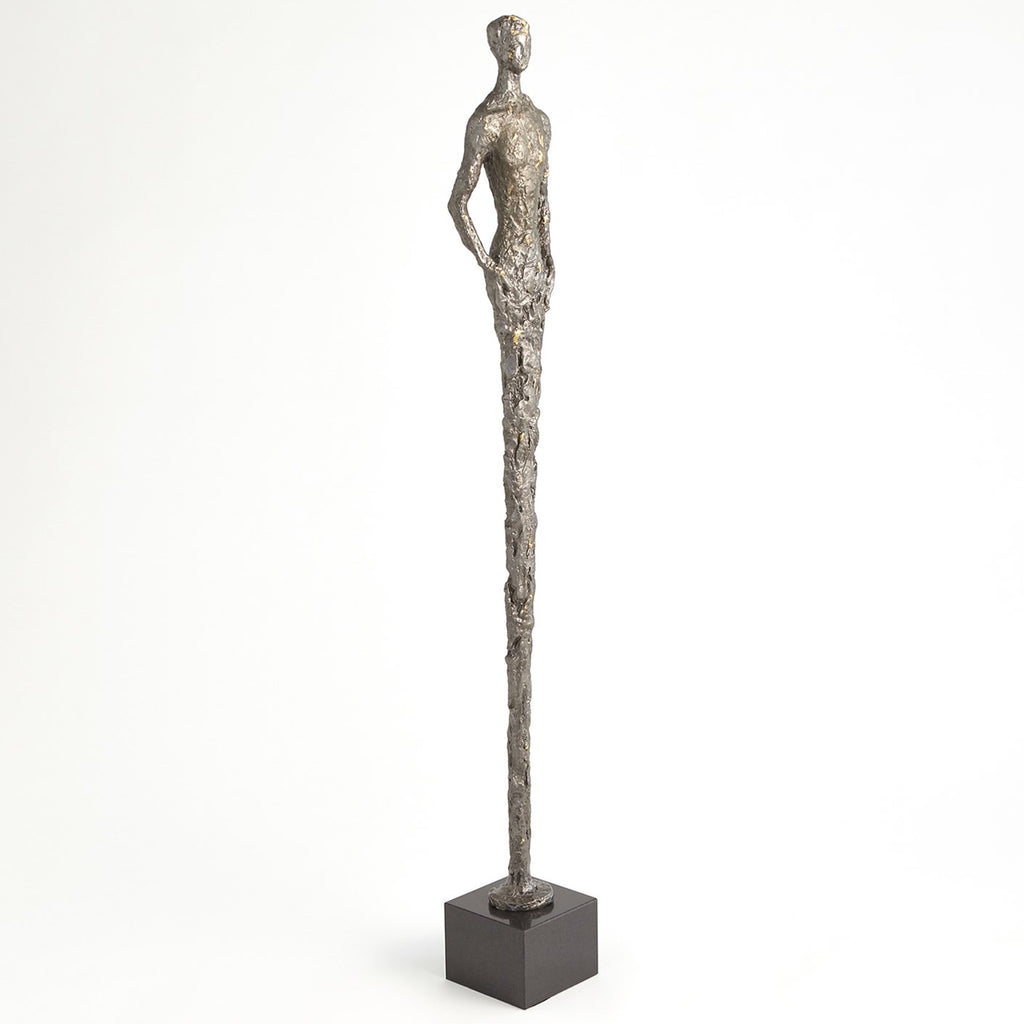 The Global Views Stretch Man and Woman are made of sand casted iron with an antique natural iron finish on a black marble base.
