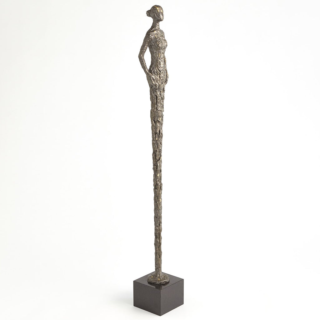 The Global Views Stretch Man and Woman are made of sand casted iron with an antique natural iron finish on a black marble base.