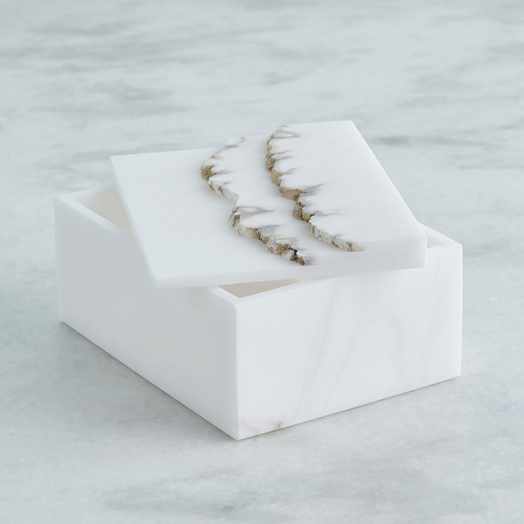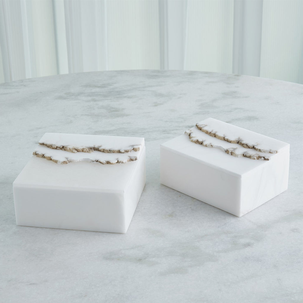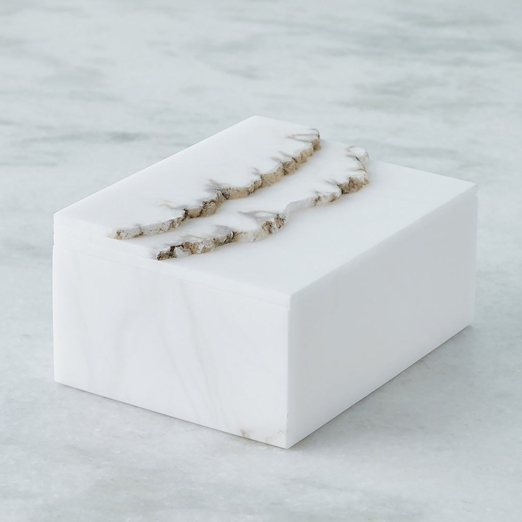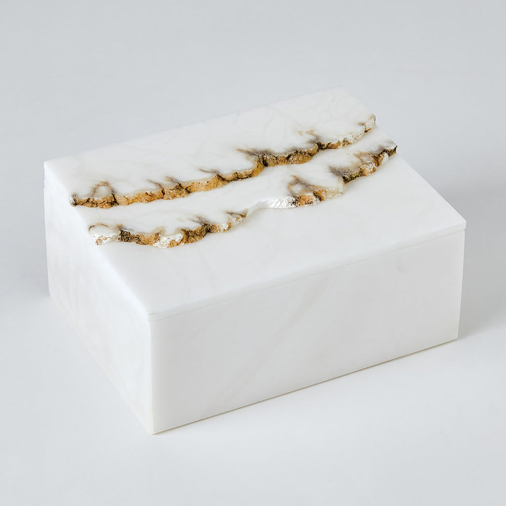 Handcrafted by Italian artisans, the Global Views Terrain Boxes are made of alabaster with raw edge details on the top surface.