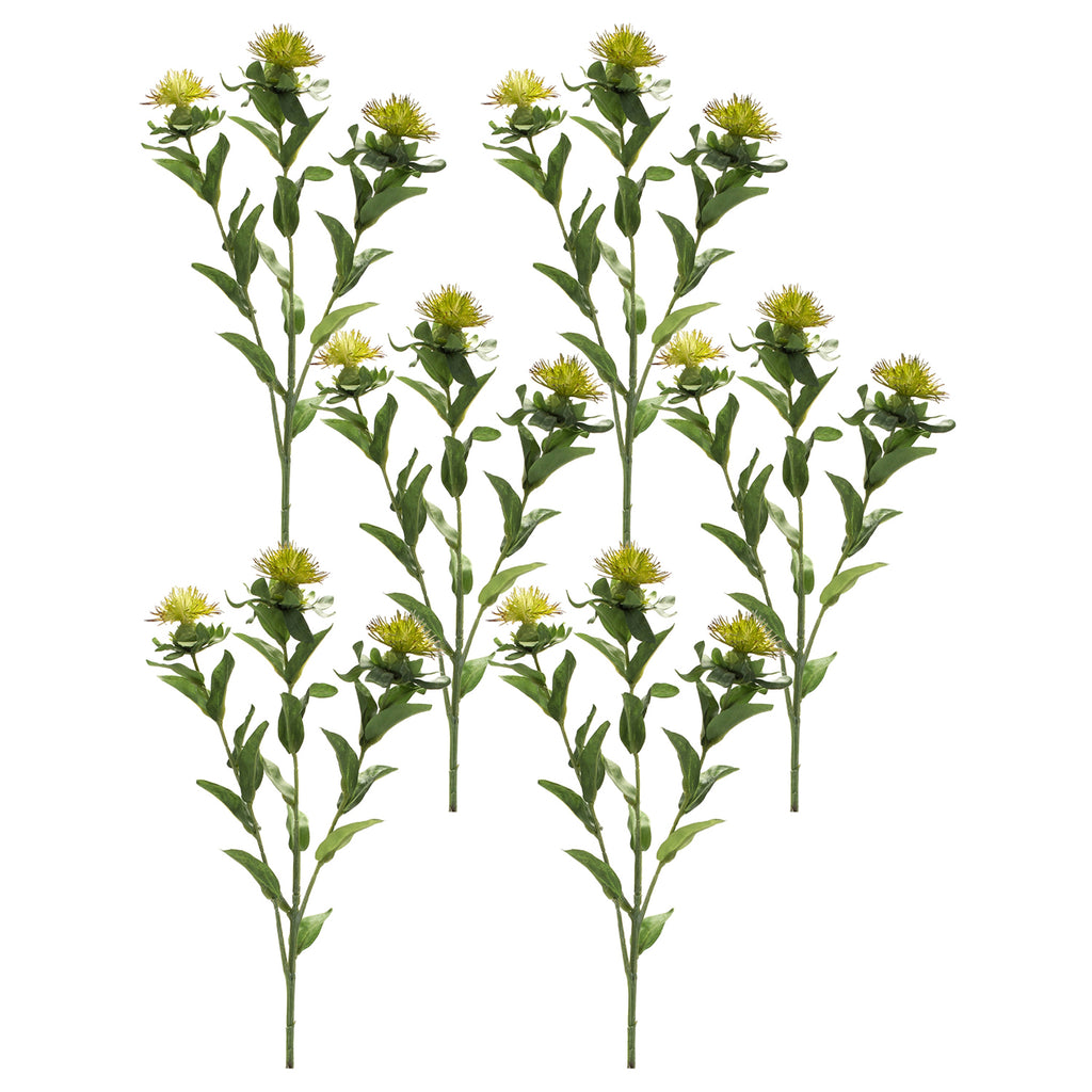 Add a pop of natural color to your home with this beautiful Thistle Spray. Featuring 6 pieces, this set's Thistle flowers paired with the assorted foliage accents makes this piece the perfect addition to your home decor. The quality polyester flowers and leaves are sure to last for seasons to come. Display the piece in a vase or decorative container to complete the look.