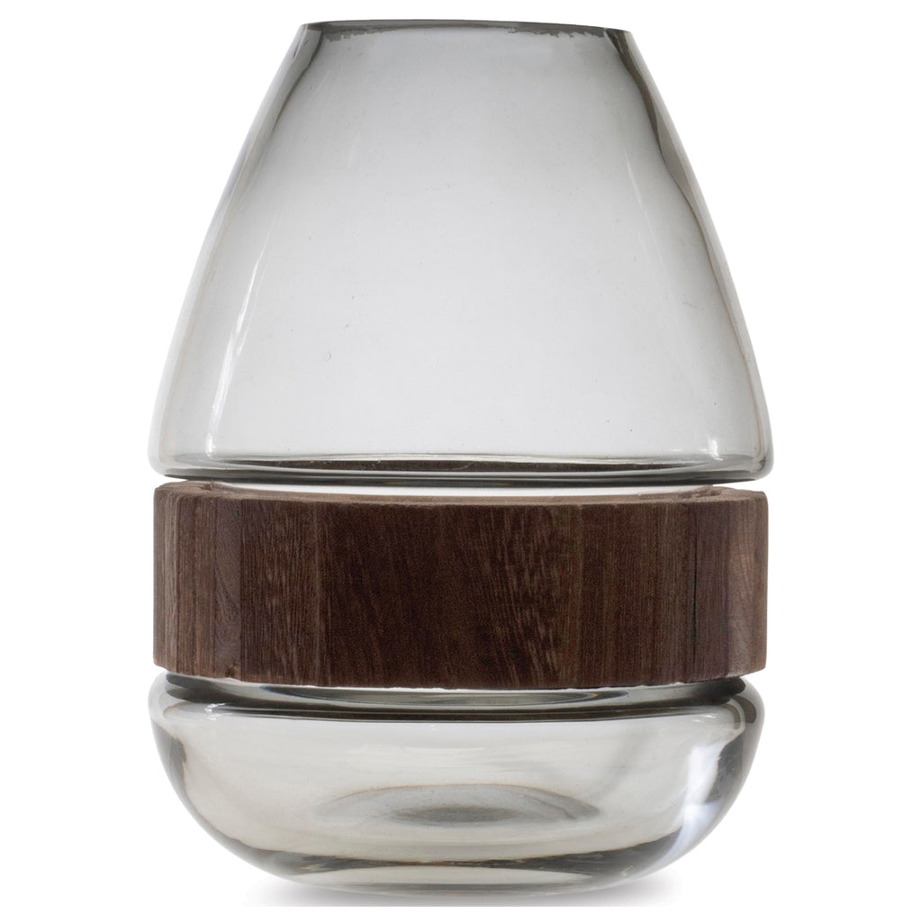 Grey Glass Vase with Natural Wood Accent