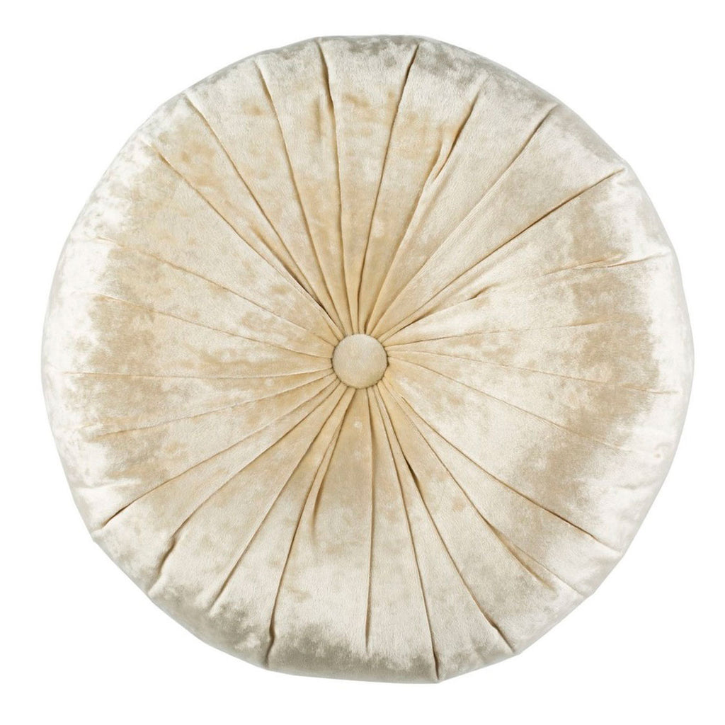 Elevate any space in hotel suite fashion with this exquisite accent pillow. Colored in rich, elegant cream, this indulgently soft circular throw pillow has a subtle, refined sheen, wonderfully showcased in plush, folded textures. Features a convenient zipper for easy-access care and cleaning.