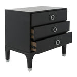 Elegant and refined, this contemporary night stand brings style and substance to any interior. Designed with a blend of clean lines, chic hardware and a timeless black or oak finish, its ample three drawers add storage to any chic bedroom.