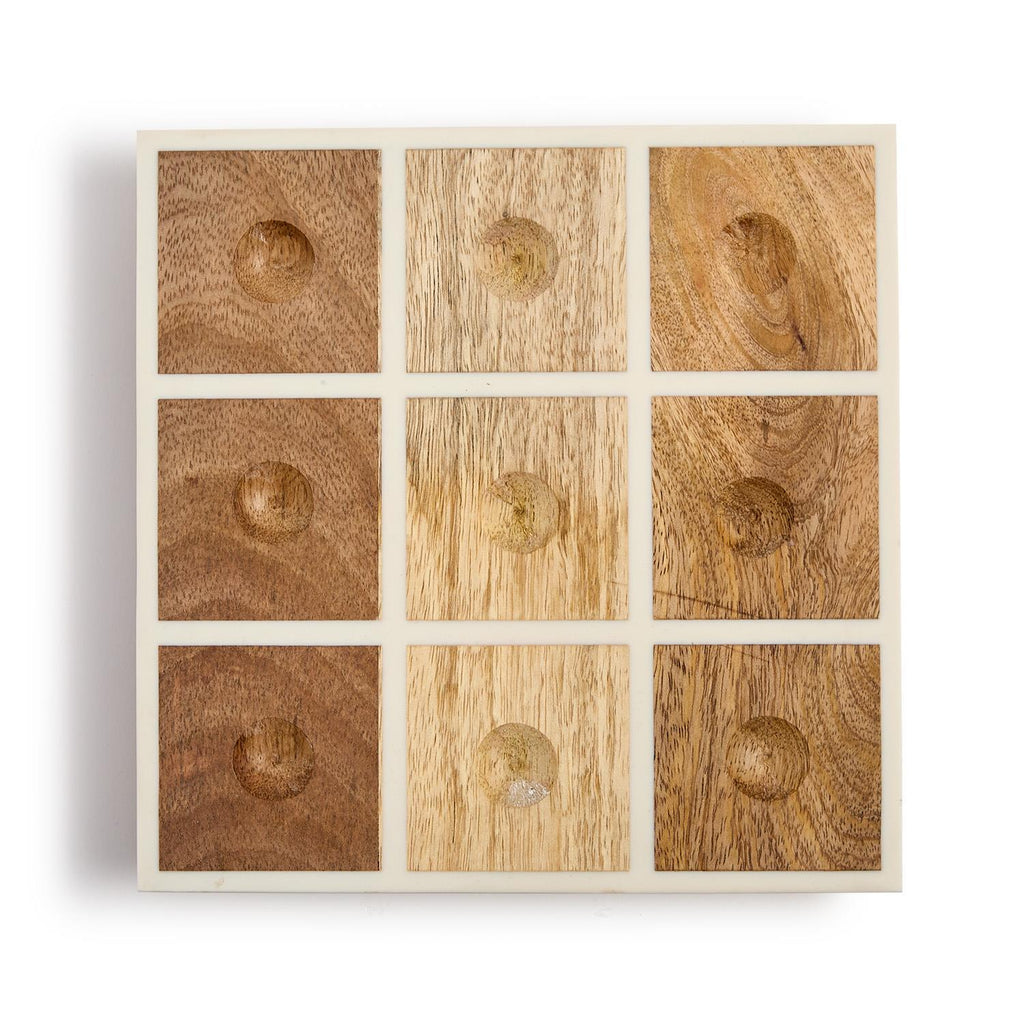 Elevate your game room with the San Marco Hand-Crafted Footed Tic-Tac-Toe Game. This exquisite piece, made with Mango Wood and Resin, adds a touch of artisanal charm to any space. Picture it on a rustic coffee table or elegant sideboard, inviting lively competition and stylish flair. Each game set is meticulously hand-crafted, showcasing unique variations and a one-of-a-kind appeal.