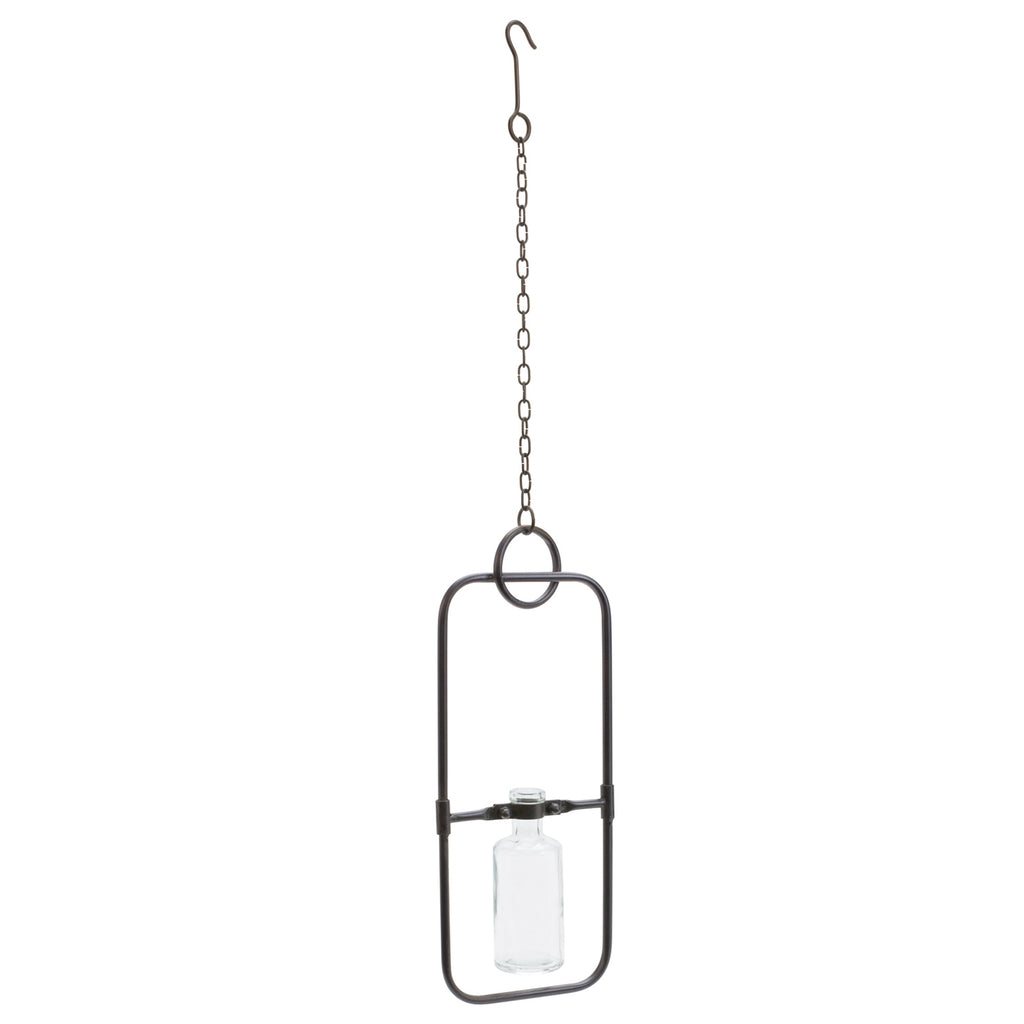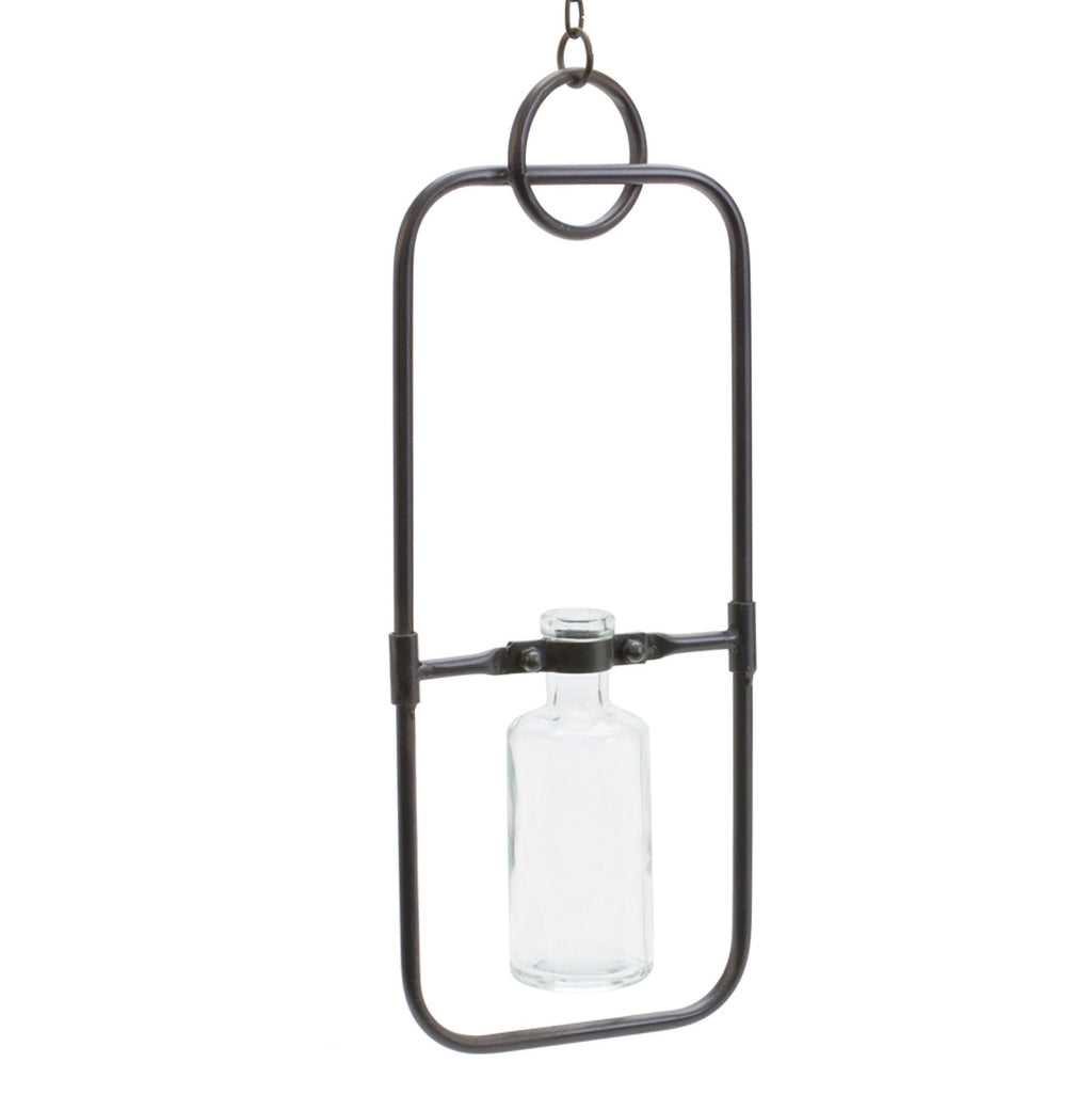 Refresh your home with a beautiful set of Hanging Bottle Vases. With a modern and contemporary design, these quality iron metal frames hold delicate glass bottles in the perfect way to display your fresh garden picks in style. Step away from traditional flower holders and show off your botanical blooms in an elegant way with Hanging Bottle Vases!