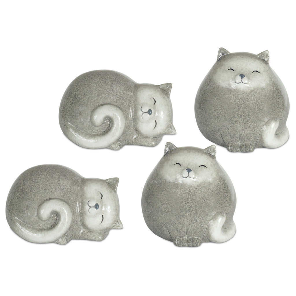 Show off your love for cats with this whimsical set of Happy Cat Figurines. Featuring two assorted designs and four total pieces, this set is the perfect addition to any season's decor. The classic grey finish paired with the quality terracotta composition is the perfect combination to create a stunning spring display. Arrange the pieces sporatically around your home to accent other spring decor, or display them together in a centerpiece or table display to make a statement.