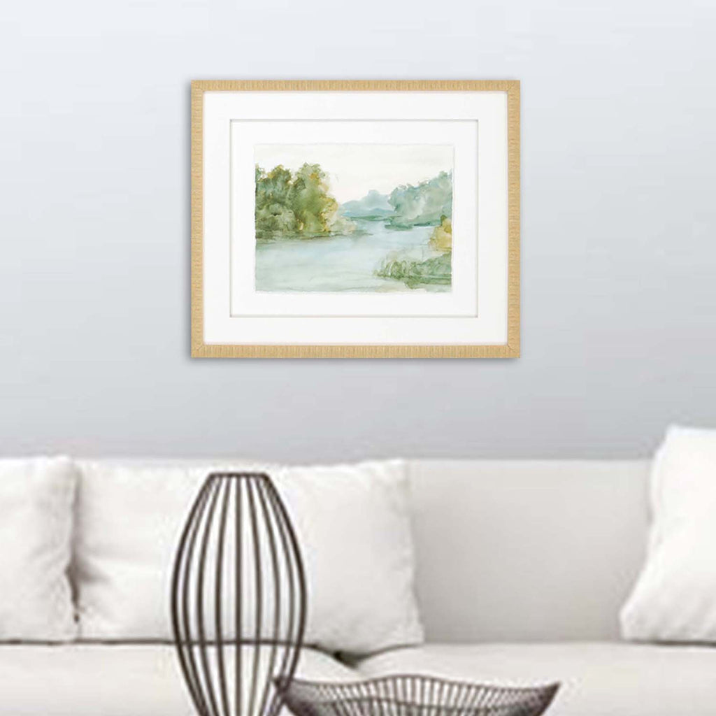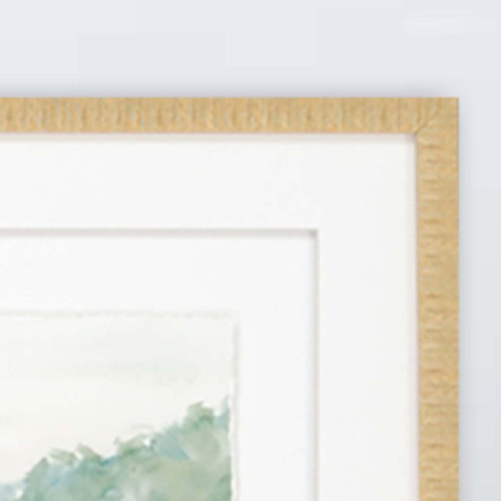 Giclee is hand deckled and float mounted with white matting. Framed in a ribbed distressed gold finish molding.