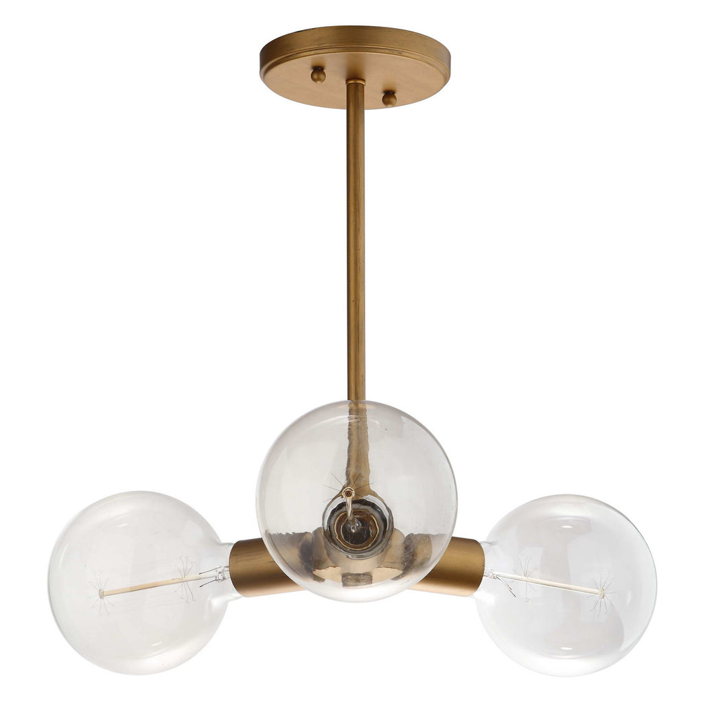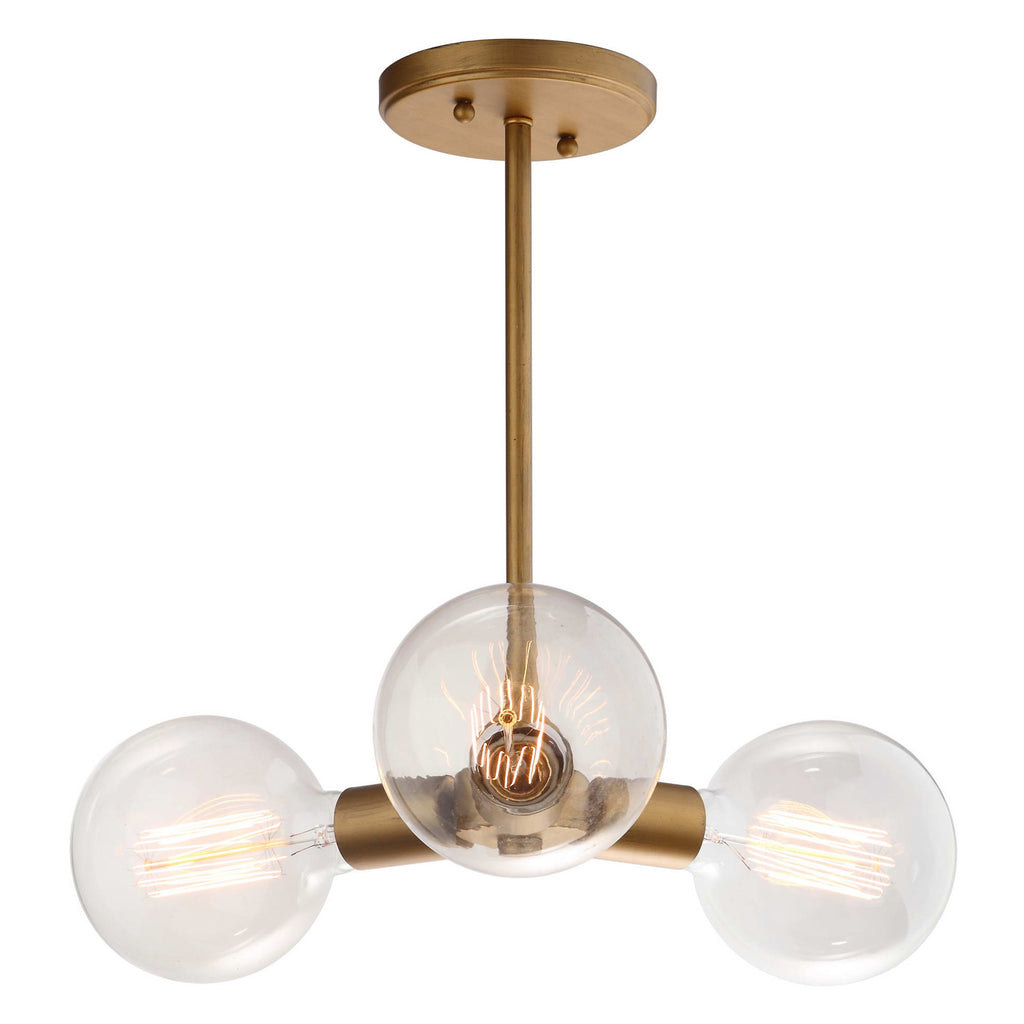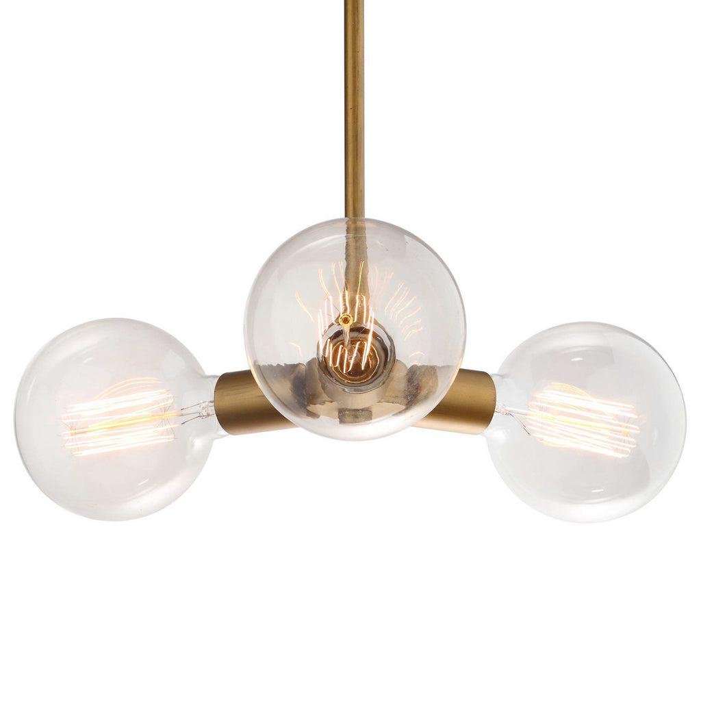 Bring the character of vintage style to any living room or dining room with this contemporary Hazard pendant. Designed with a deluxe gold metal finish and clean lines, it’s paired with three transparent glass globes with retro bulbs for an industrial chic look.