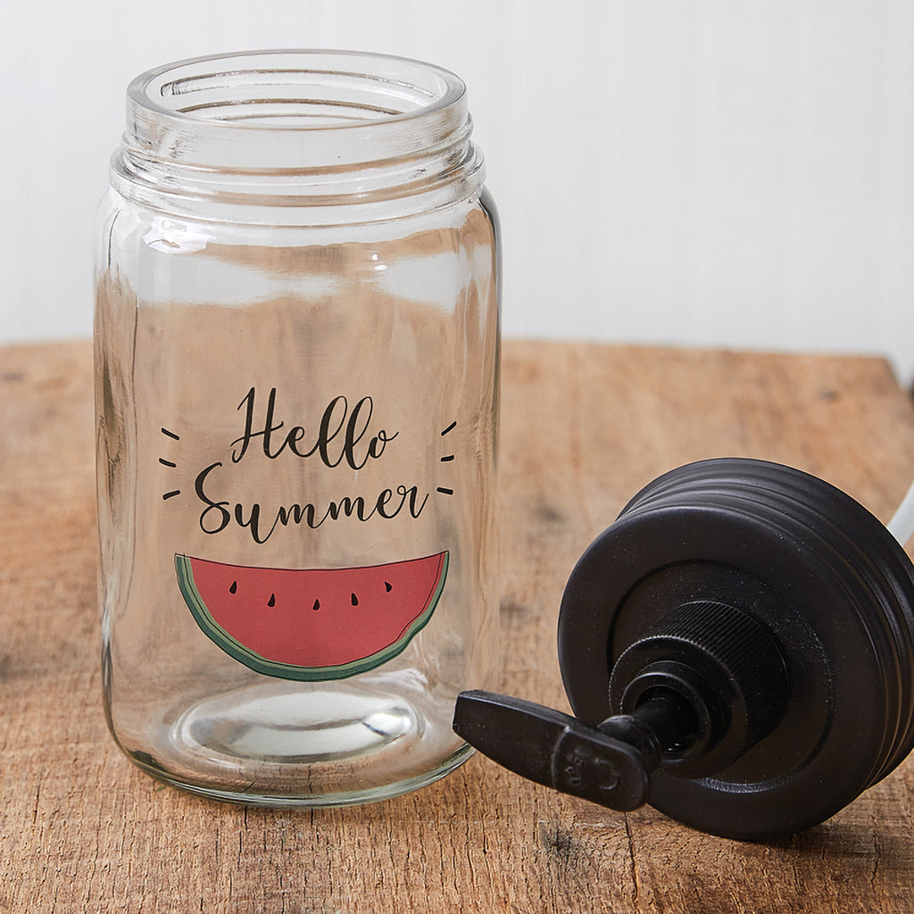 Hello Summer! Start it off with one sweet slice of watermelon! Holds one pint of liquid. Clear Glass. Features a black pumper.