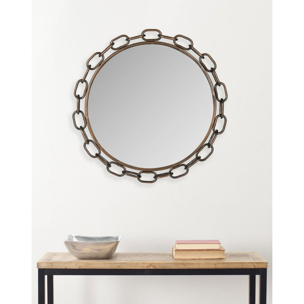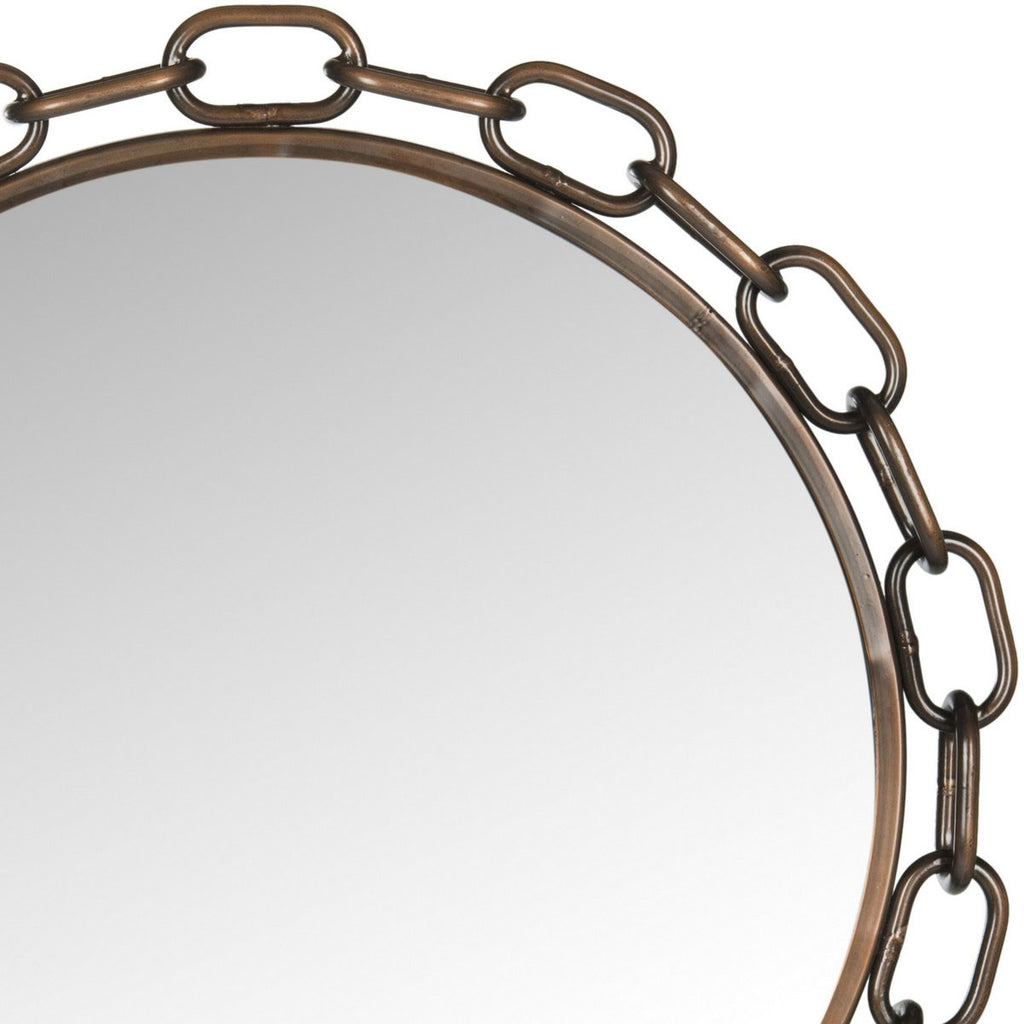 Nautical with a fashionable twist, this chain link mirror is a bold and handsome anchor to transitional and traditional rooms. Crafted with an iron and wood frame in an antique copper finish, this mirror is a masterwork of metal artistry.