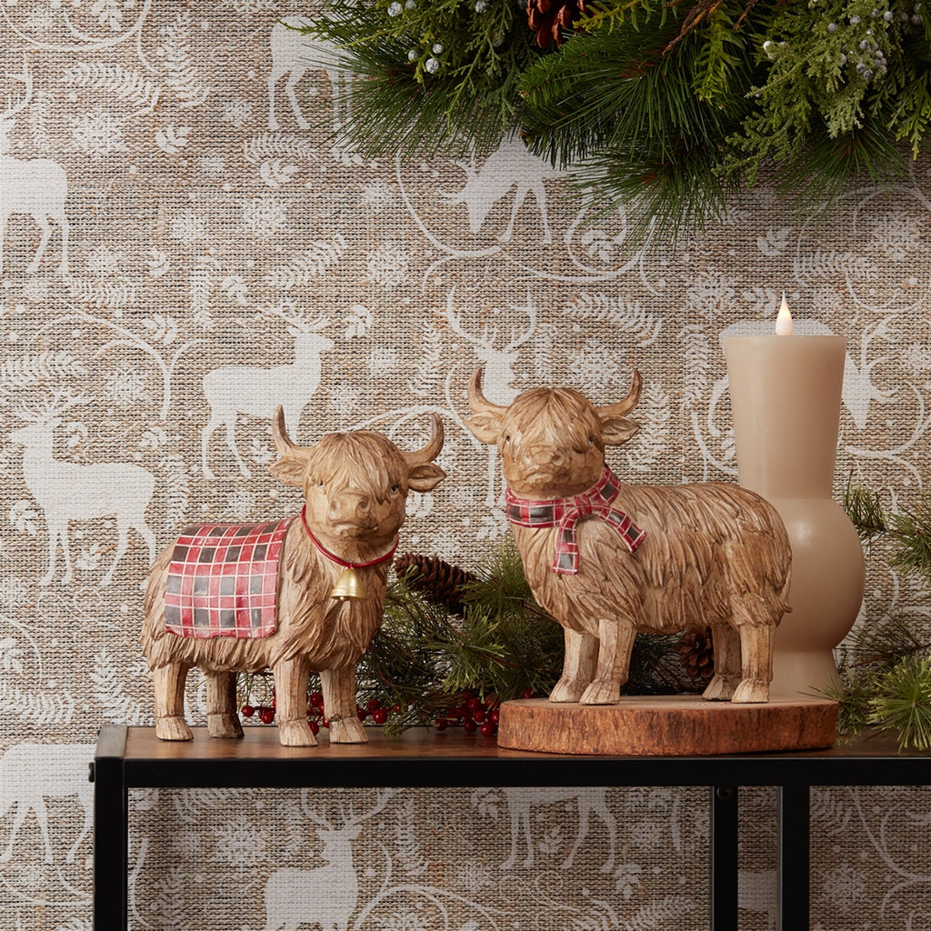 It's time to add a bit of country charm to your holiday decor! Our set of two Highland Cow Figurines is the perfect addition to your home. Crafted with intricate details like a plaid scarf and blanket accent, its carved design adds rustic charm to any room. Whether used as a centerpiece for your holiday table or as a home accent, this Highland Cow Figurine is sure to bring smiles all around.