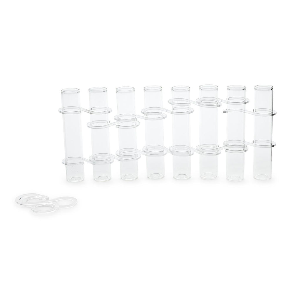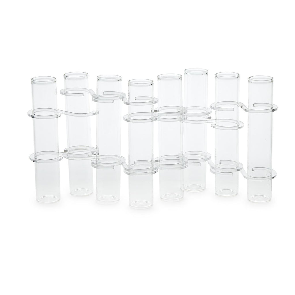 Enhance your home with the beauty of fresh blooms Set of 8 Hinged Tube Flower Vases. Crafted from a combination of glass and acrylic, these vases are a stunning addition to any space. Hand-assembled with care, this set includes 8 tubes and 16 connectors for versatility in arrangement. Perfect for creating a picturesque garden view in your living room, dining area, or entryway.