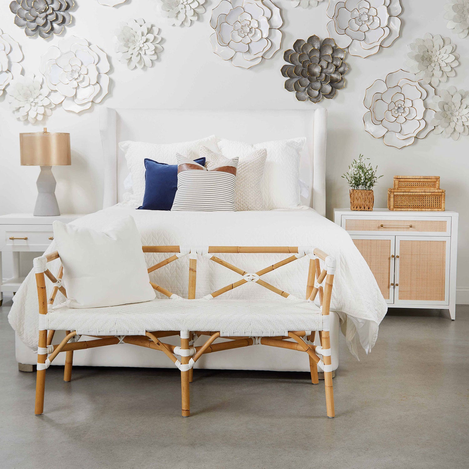 • Finish: Brushed Black Acacia / Natural Rattan or Matte White / Natural Rattan