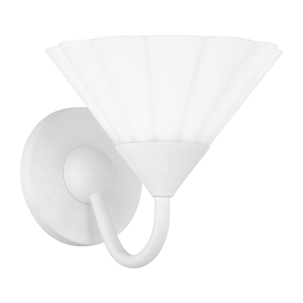 High-quality and exceedingly creative, Mitzi delivers a semi-nostalgic classic lighting collection with streamlined contemporary elements that instantly upgrade your space. Transform dreary hallways and dark bedsides with wall sconces by Mitzi, brightening spaces with welcoming light and practicality with a high-design feel. Softly ruffled opal etched glass shades mounted on slender, curved arms give this stylish design a sculptural feel whether hanging from the ceiling or mounted on the wall. The Textured White finish produces a clean, monochromatic effect, while the Aged Brass finish option adds a hint of shine. Mounted for uplight and available as a wall sconce, bath, or chandelier, Kelsey works in spaces throughout the home.