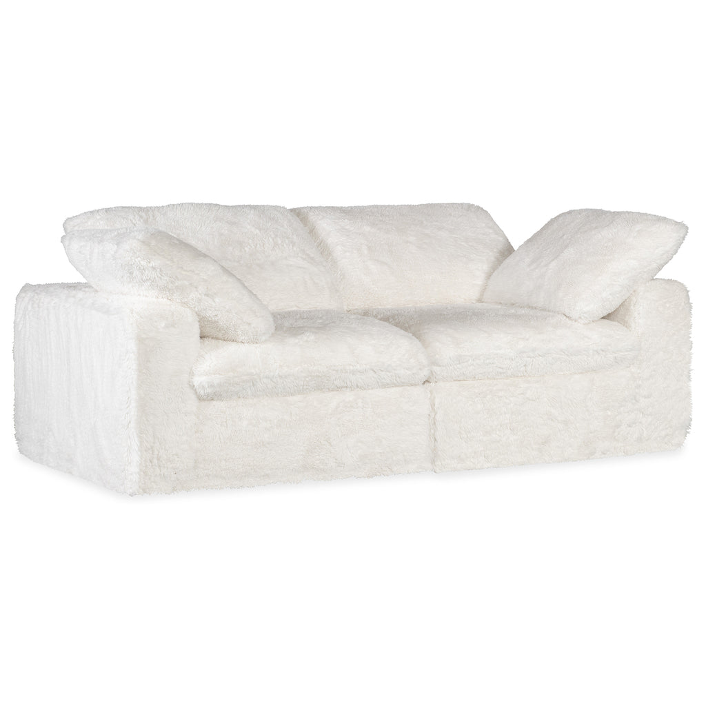 Wrap yourself in cozy with the Barefoot comfort sofa, covered in the Yakety Yak Natural-colored plush super-soft fabric. The modern sofa has a loose pillow at each arm, loose seat cushions and a contemporary casual boxy silhouette with rounded edges.