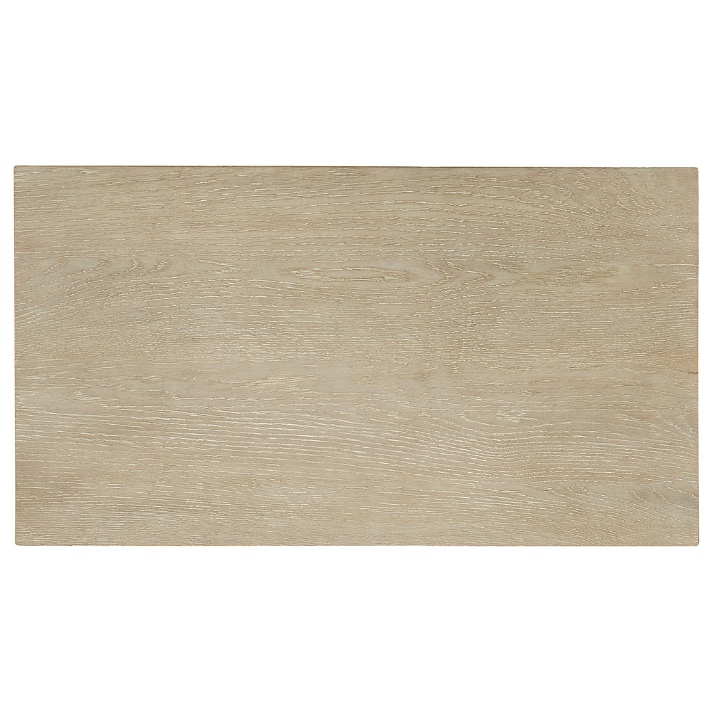 With an open and airy profile, the Cascade Two-Drawer Nightstand offers chic style and a calming neutral color palette to your space. Crafted of Oak Veneers, it is finished in Terrain, a soft taupe color made casual and tactile by dry brushing. The finishing touches are a champagne-colored bar pull and a center open storage area. Functional features include a USB outlet and a cord clip on the back.