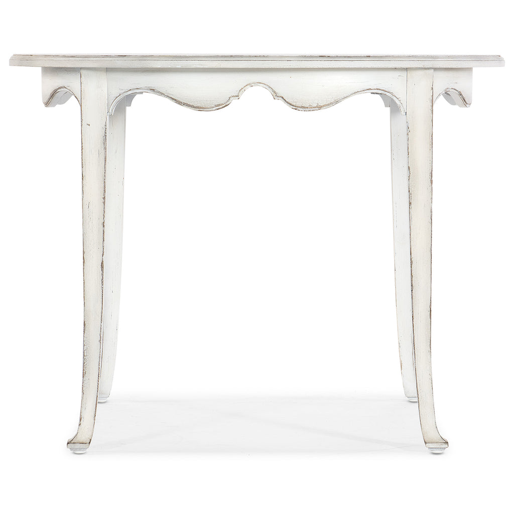 Capturing the vintage charm of the coastal South, the Charleston Breakfast Table is crafted of Maple Veneers and has a scalloped apron design. The finish is Magnolia White, a color originally created from the purest limestone, used to paint the pillars, posts and fences of classic southern homes. The round table has understated cabriole legs, a Solid-Wood Edge top and accommodates up to 4 coordinating chairs.