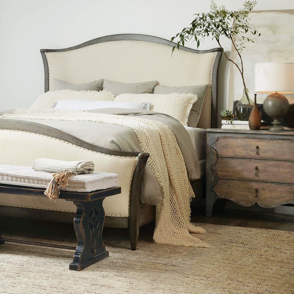 Romantic and rustic, the Ciao Bella Bachelors Chest is loaded with character, pairing the soft neutral Maple rub-off finish on the body with a Time Worn Gray accent finish on the scalloped outer edges and feet for a charming touch. The 3-drawer chest features a cedar-lined bottom drawer, 3-plug electrical outlet with USB port for charging electronics. Crafted of Poplar and Hardwood Solis with Maple Veneer.