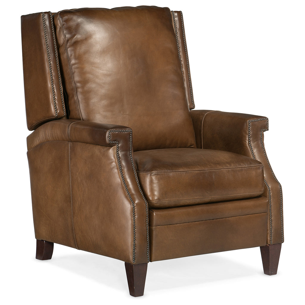 Soft angular lines on the arms and wings offer a crisp and chic style appeal to the Collin Push-Back Recliner. Covered in the inviting Checkmate Pawn handwiped aniline top-grain leather, the recliner is accented by nailhead trim around the arms and wings, and the legs are finished in the rich Natchez Brown.