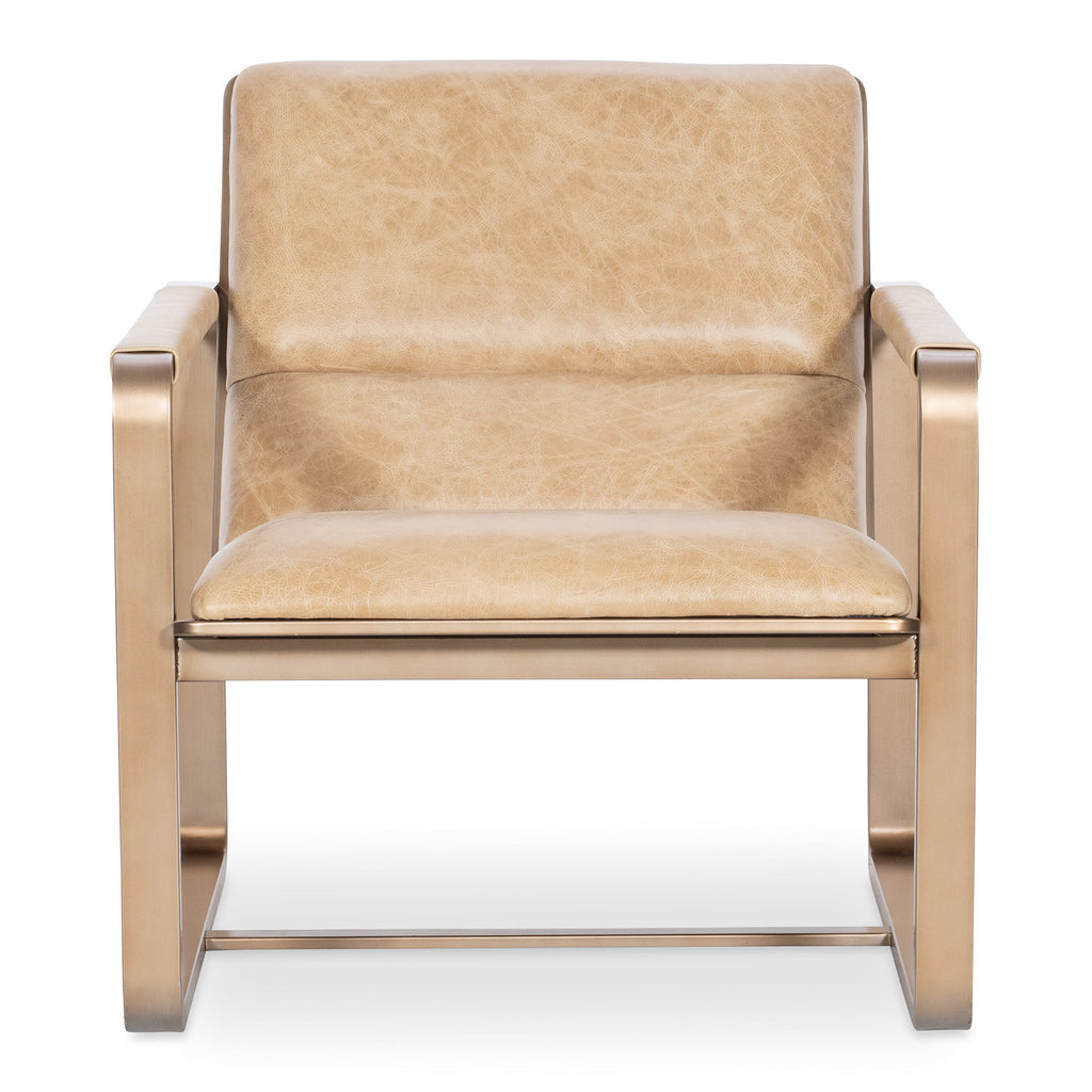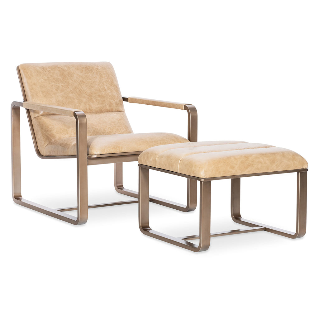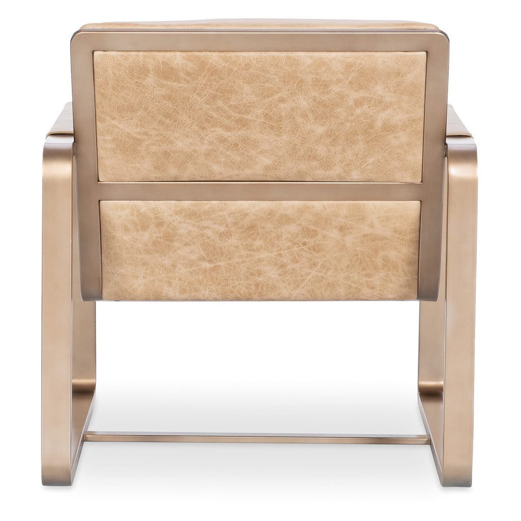 Sculptural and sleek, the Eco Chic Lounge Chair blends industrial glamour with upscale comfort. Wrapped in Firenze Ghiaia top grain leather and framed in gleaming gold metal, this armless lounge chair features tight seat and back cushions and leather-wrapped arms for a curated designer finish. A perfect statement piece for modern living rooms and high-end hospitality spaces. Hooker Furniture Upholstery is a designer-inspired collection of upscale leather seating that includes versatile reclining chairs, modern-day reclining sofas, eclectic club and artisan accent chairs, as well as a selection of executive desk chairs for the home. Designed and curated to appeal to a variety of style tastes, each piece from Hooker Furniture Upholstery is meticulously crafted in a unique selection of textures and hues.