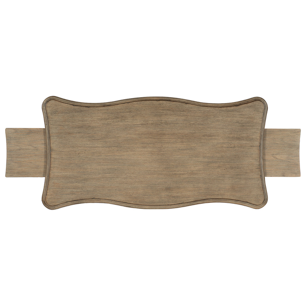 With a casual attitude and a sun-washed ambience inspired by the Mediterranean island for which it is named, the Corsica leg desk is crafted of Acacia Veneers with a wire-brushed, artisan light natural finish with reclaimed character. Stylish details include a shaped apron, decorator bun feet and a shaped stretcher on 3 sides of the base. The desk features one drawer and two pullout shelves for extra work surfaces on each end.