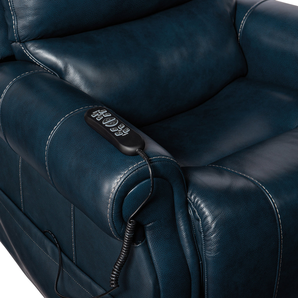 Offered in the brilliant blue Sorrento Night Seas semi-aniline top grain leather cover with contrasting stitch trim, you’d never know the Eisey Power Recliner goes all out for comfort, offering a power headrest, adjustable lumbar support and a usb port to charge your device. Available with or without a power lift.
